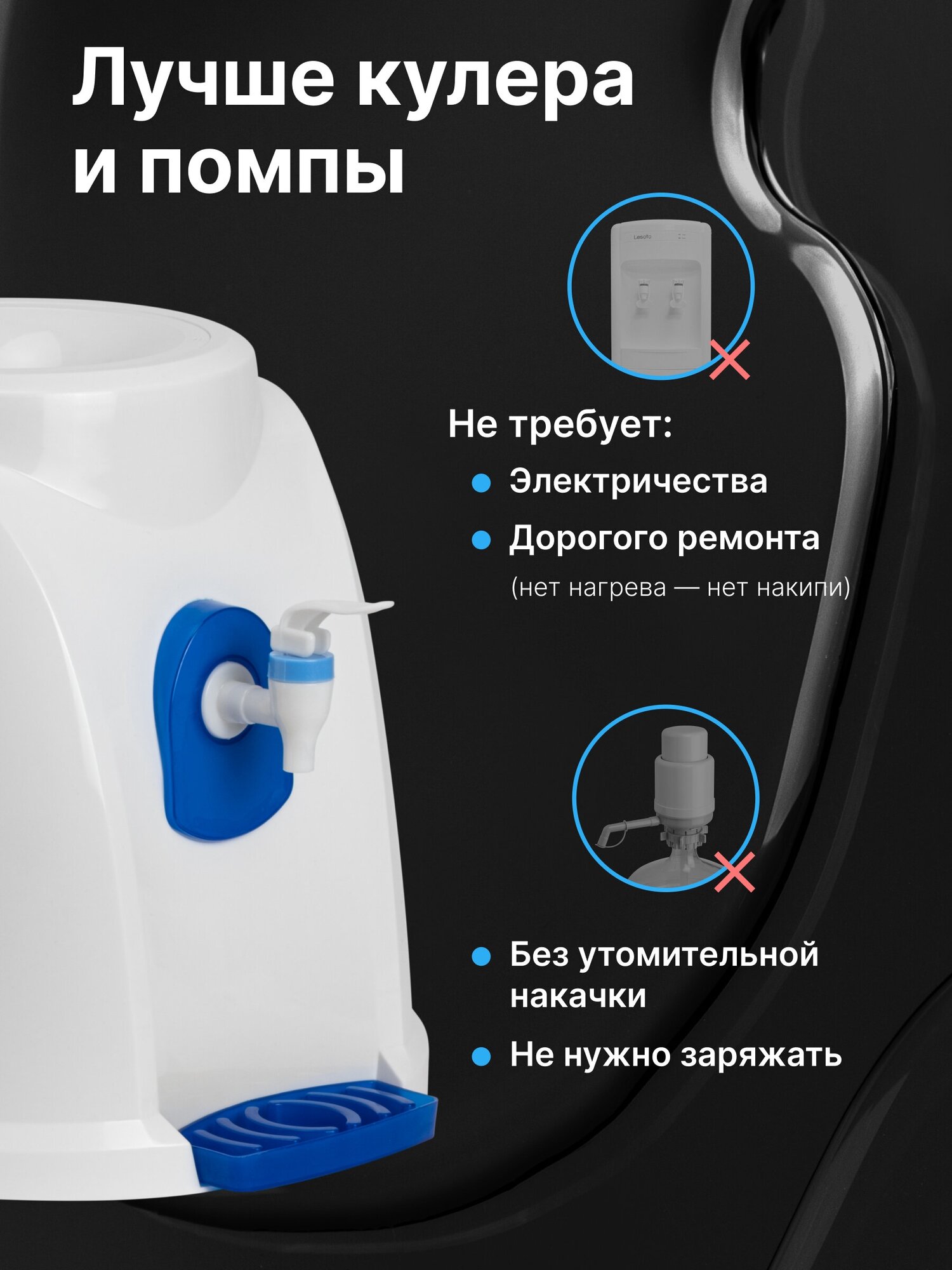 Кулер для воды настольный, раздатчик для воды без нагрева без охлаждения LESOTO, диспенсер для воды 19л, 12л, аналог Sonnen, Vatten, Aqua Work, AEL интересное: