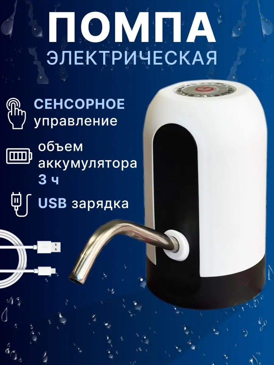 Помпа для воды электрическая для бутыли 19л с аккумулятором и зарядкой USB