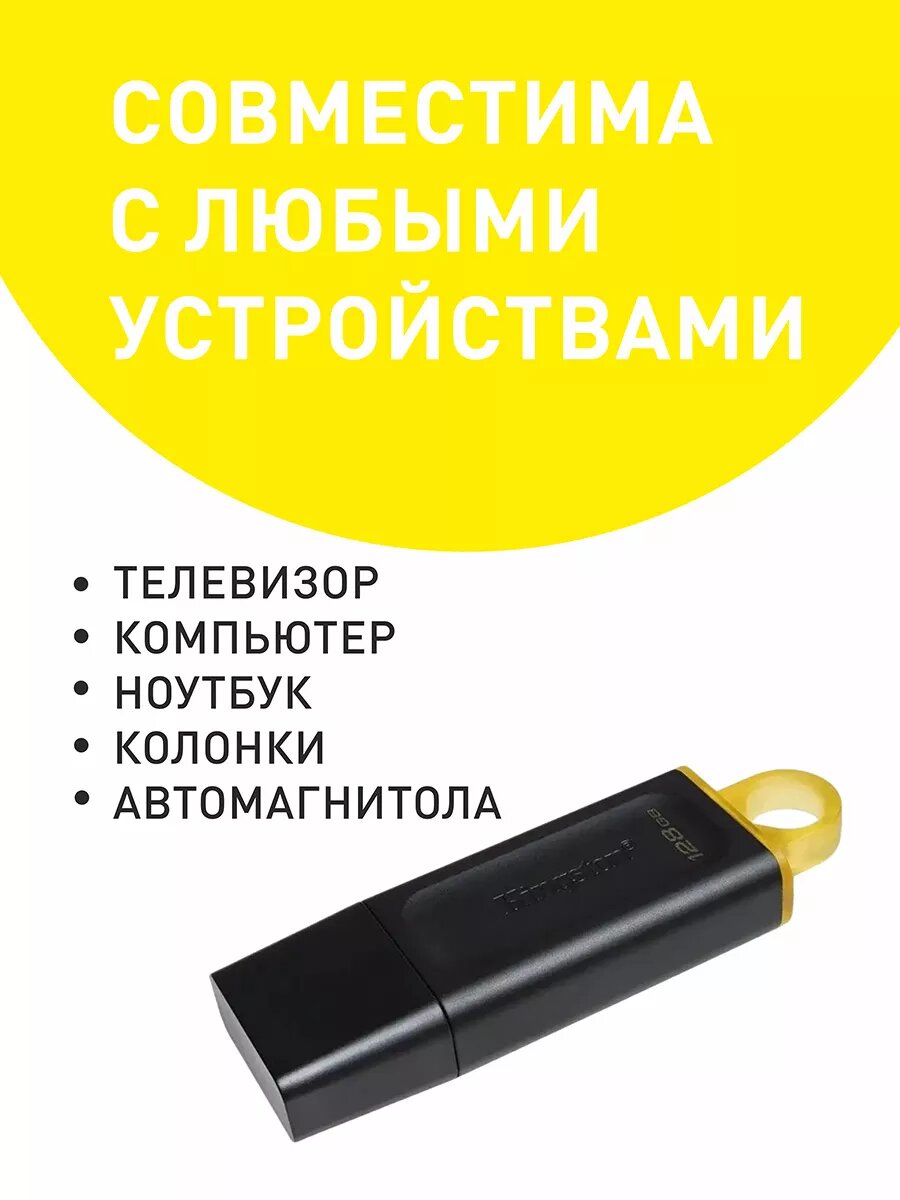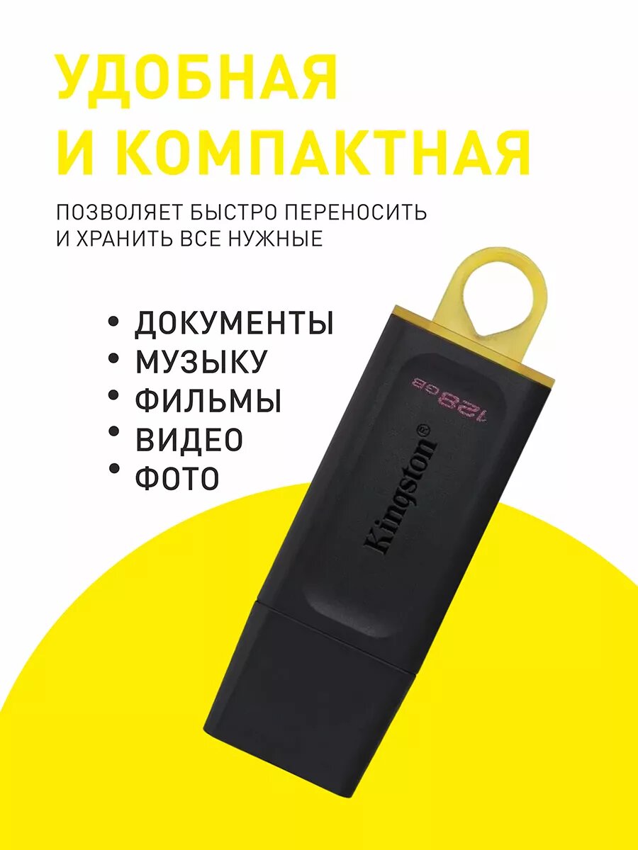 Флешка Kingston DataTraveler Exodia 128 ГБ, 1 шт., черный/желтый
