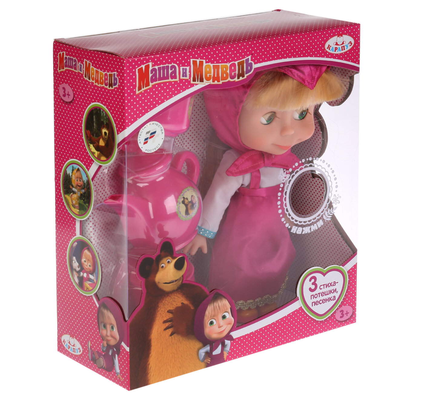 Карапуз Кукла Маша 25 см озвученная с набором для чаепития из серии Маша и Медведь 243736 83033Т с 3