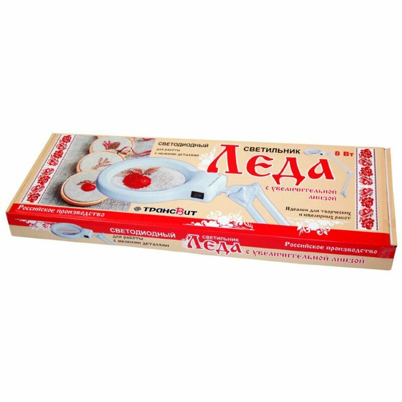 Лупа с подсветкой Трансвит Леда С20-035 ПДБ50-8-035 (LED, 8Вт 4000К,с увеличительной линзой 2D, метал.струбцина), белый