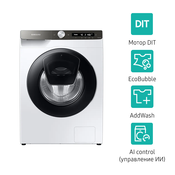Стиральная машина Samsung WW90T554CAT/LD, до 9 кг, с дверцей AddWash, инверторным мотором, технологией Eco Bubble, белая / черная