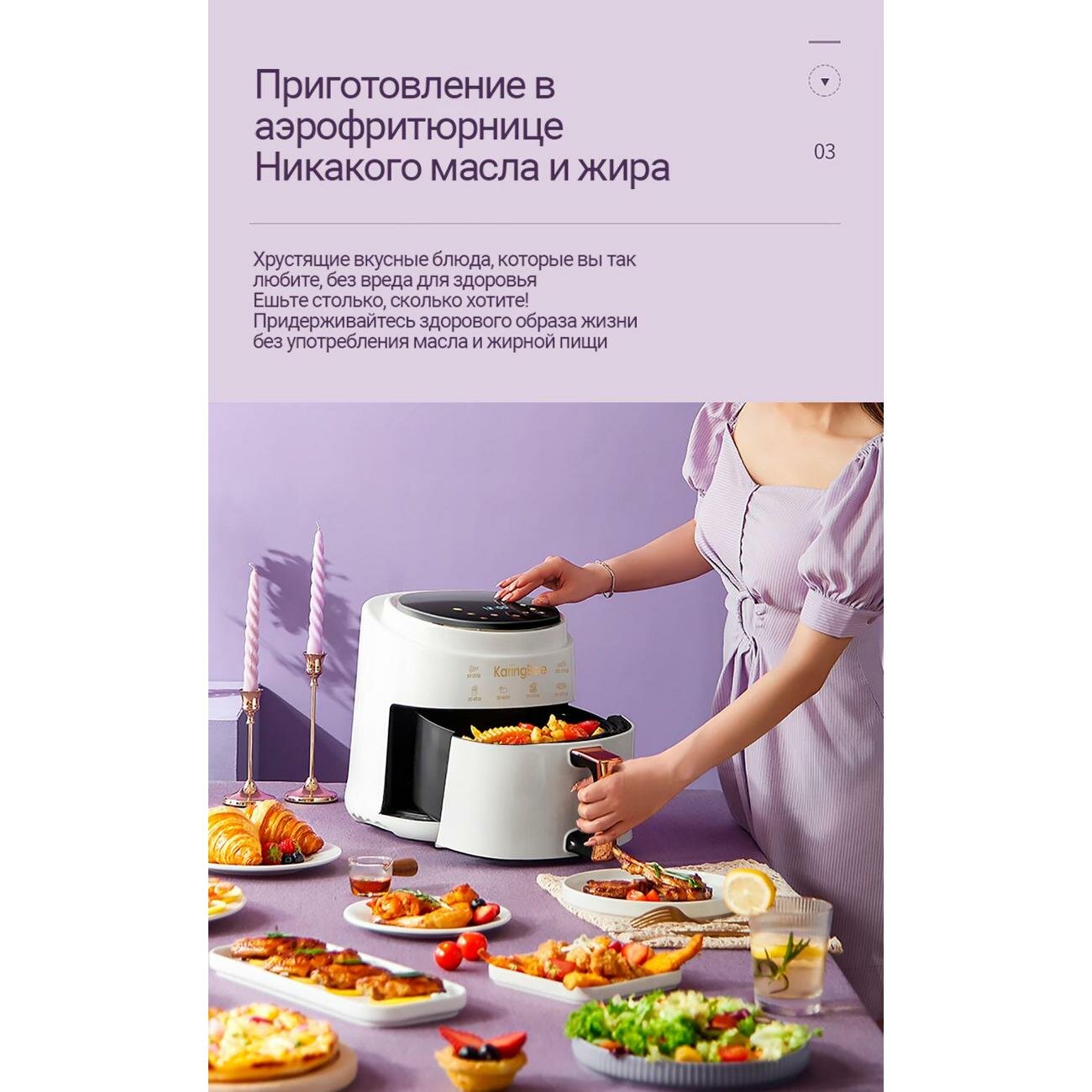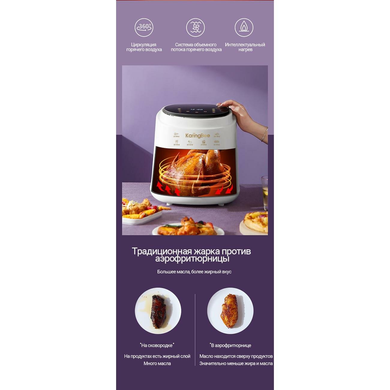 Ниже Вы можете прочитать отзывы на Аэрогриль KaringBee JD689 White, ознакомится с подробными характеристиками, посмотреть интересные обзоры и фотографии на Аэрогриль KaringBee JD689 White.