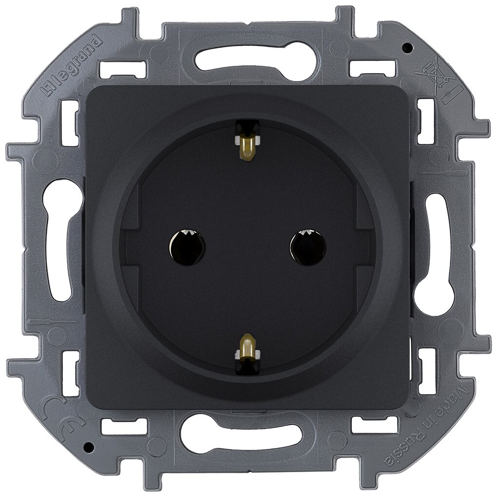 Розетка с заземлением Legrand Inspiria для скрытого монтажа , цвет "Антрацит", ток 16 А, напряжение ~250В, максимальная мощность 3680 Вт.