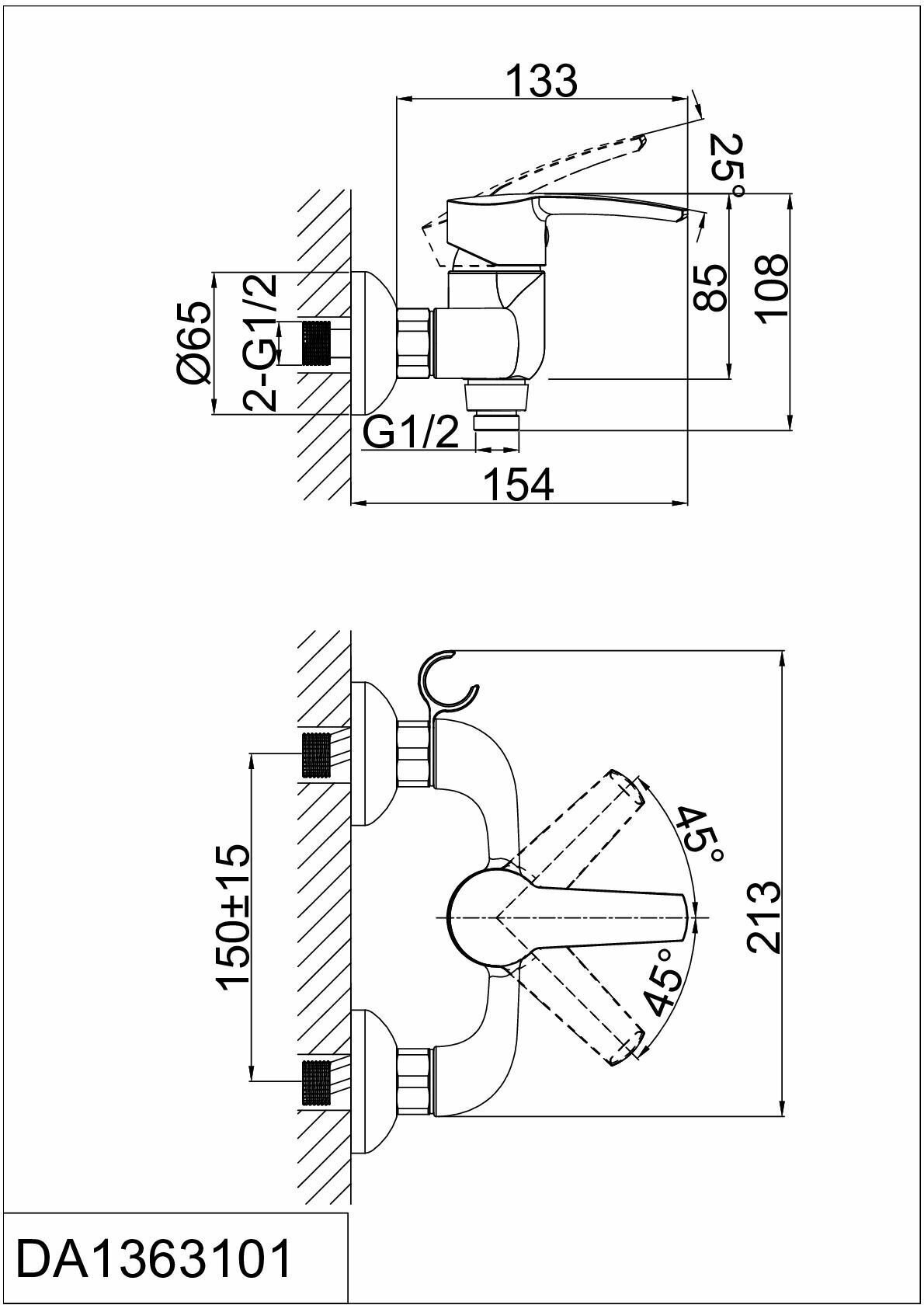 Смеситель для душа без излива D&K Rhein Valerius DA1363101, хром, с душевой лейкой, латунь