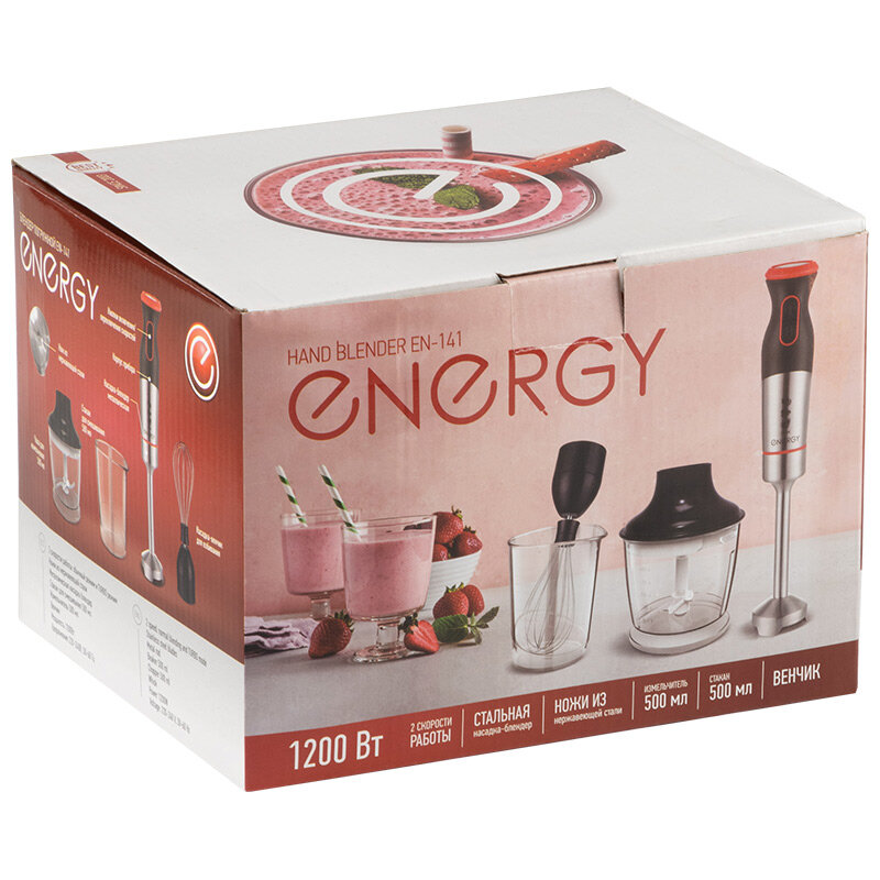 Блендер погружной ENERGY EN-141, 1200Вт, 2 скорости, стакан для смешивания, венчик, измельчитель (105261) интересное: