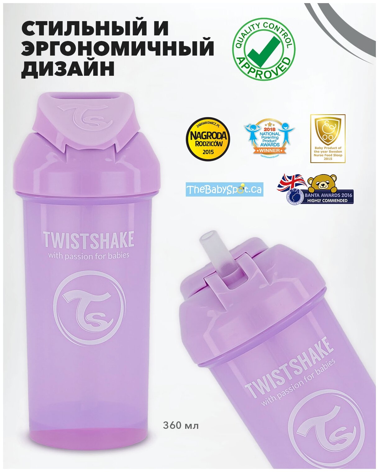 Купить Поильник непроливайка детский с трубочкой 360мл, от 6+мес.Twistshake, цвет: фиолетовый (Pastel Purple)