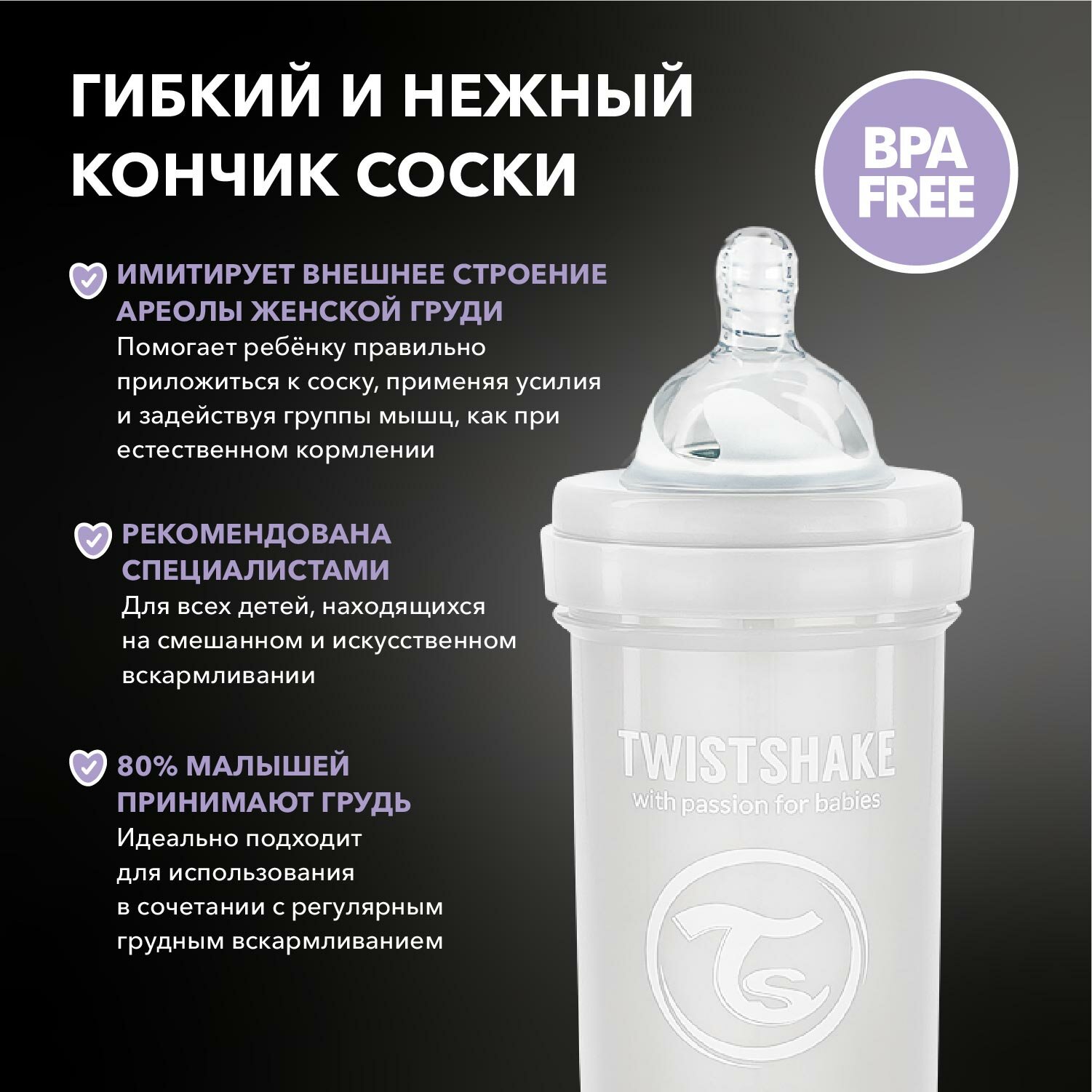 Детская антиколиковая бутылочка для кормления Twistshake, 260 мл, от 2 мес. Белый Бриллиант