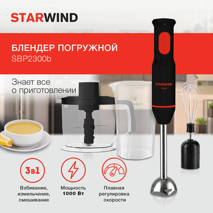 Блендер погружной Starwind SBP2300b 1000Вт красный/черный интересное: