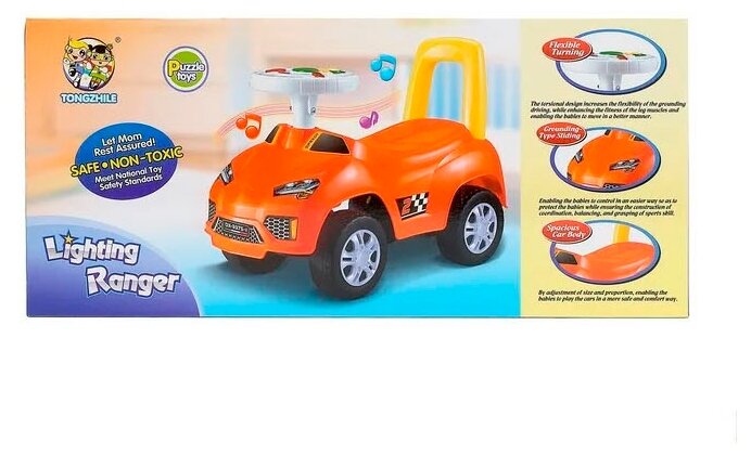 Толокар «Гонка», световые и звуковые эффекты, цвет оранжевый