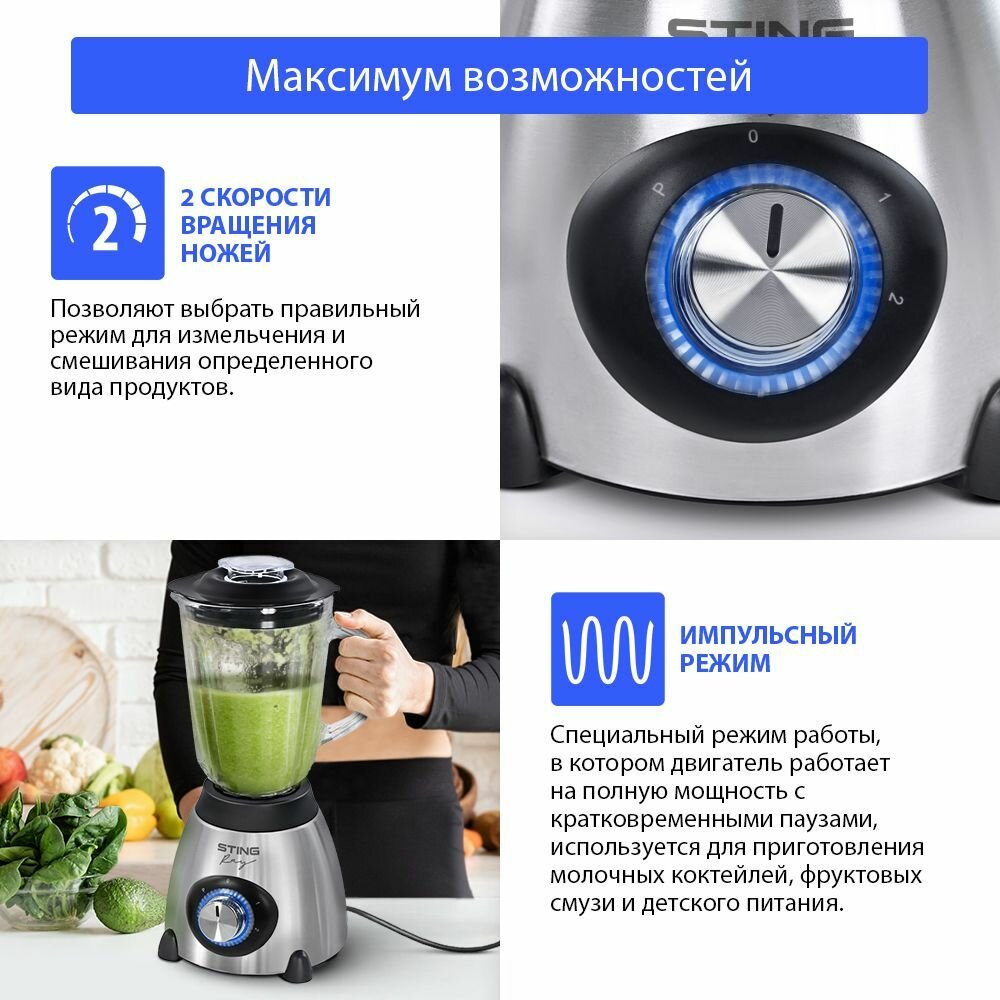 Блендер стационарный STINGRAY ST-KP2206A черный жемчуг/сталь интересное: