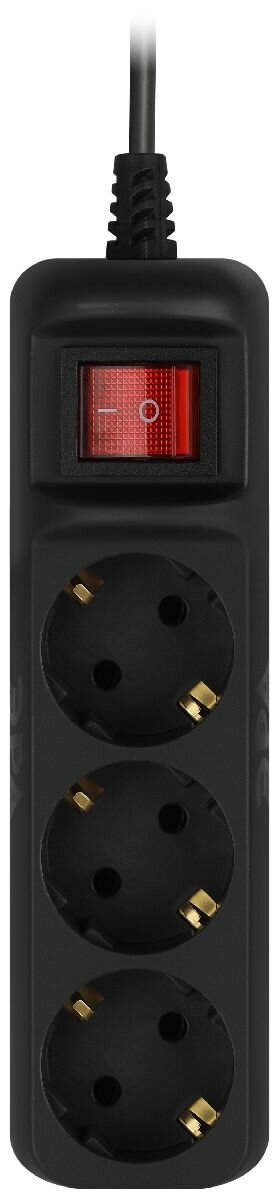 Эра Б0057729 Удлинитель электрический UX-3es-5m-B с заземлением с выключателем 3 розетки 5м ПВС 3x0,75мм2 10А черный