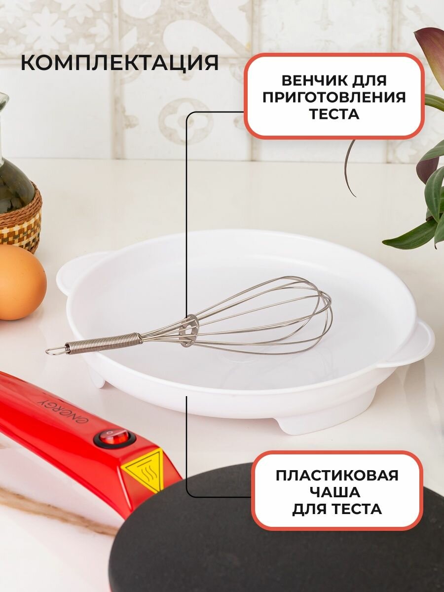Купить Energy Блинница электрическая ENERGY EN-262, погружная, 650 Вт, d=20 см, ёмкость для теста, красная