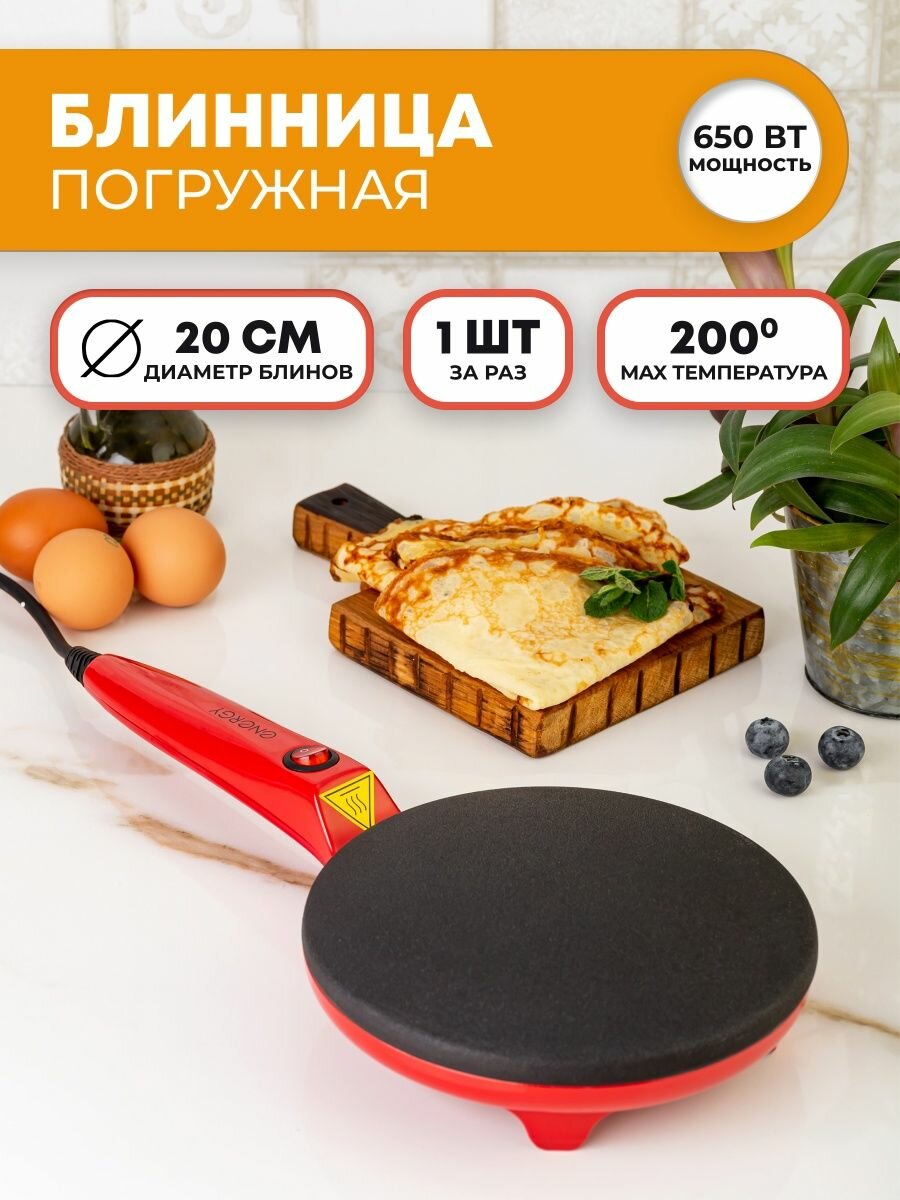 Блинница электрическая EN-262, погружная, 650 Вт, d=20 см, ёмкость для теста, красная