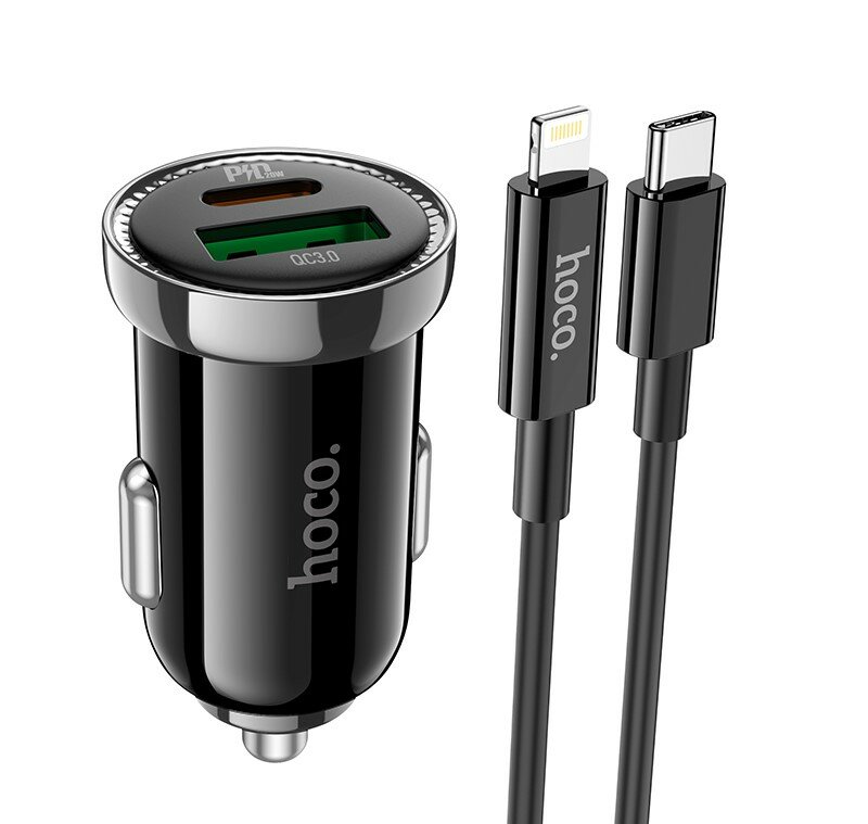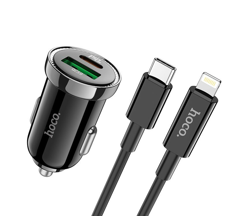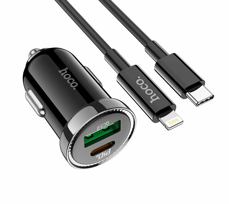 Автомобильное ЗУ Hoco Z44 Leading PD20W+QC3.0 (с кабелем Type-C/Lightning), черный