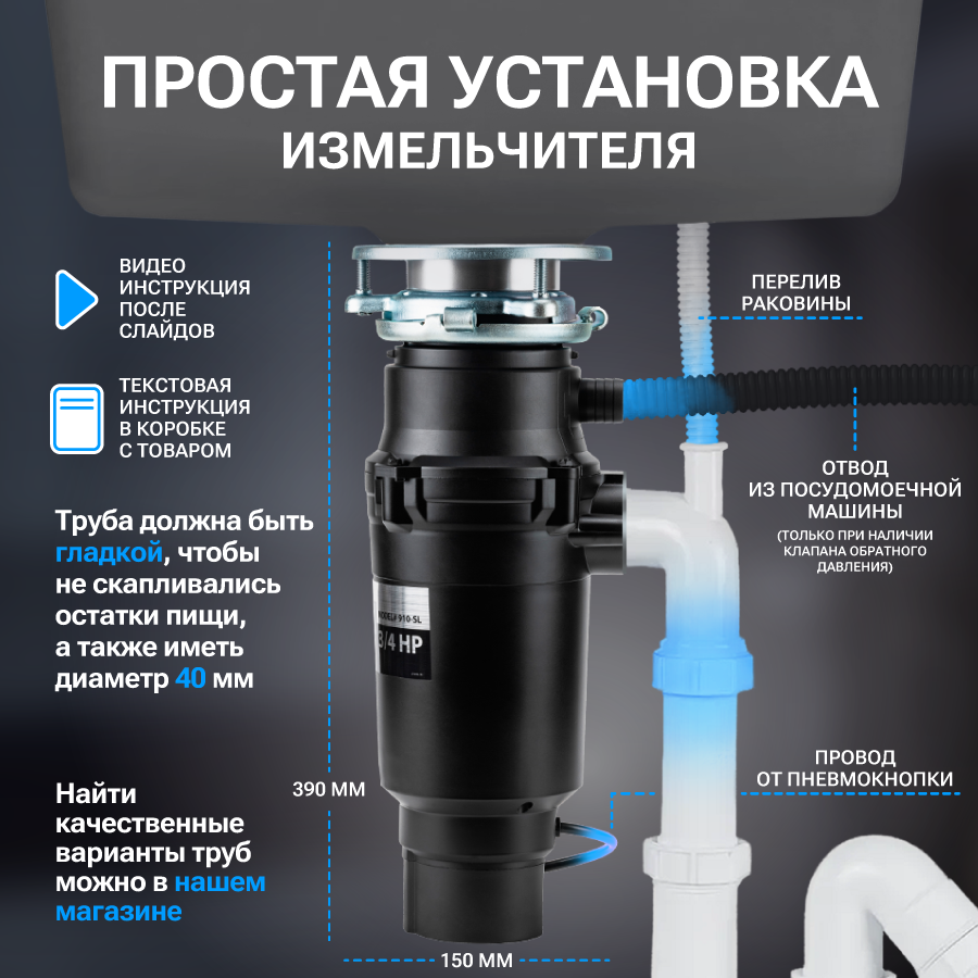 Измельчитель пищевых отходов (диспоузер) Bone Crusher BC 910 Slim line, сифон под раковину в подарок интересное: