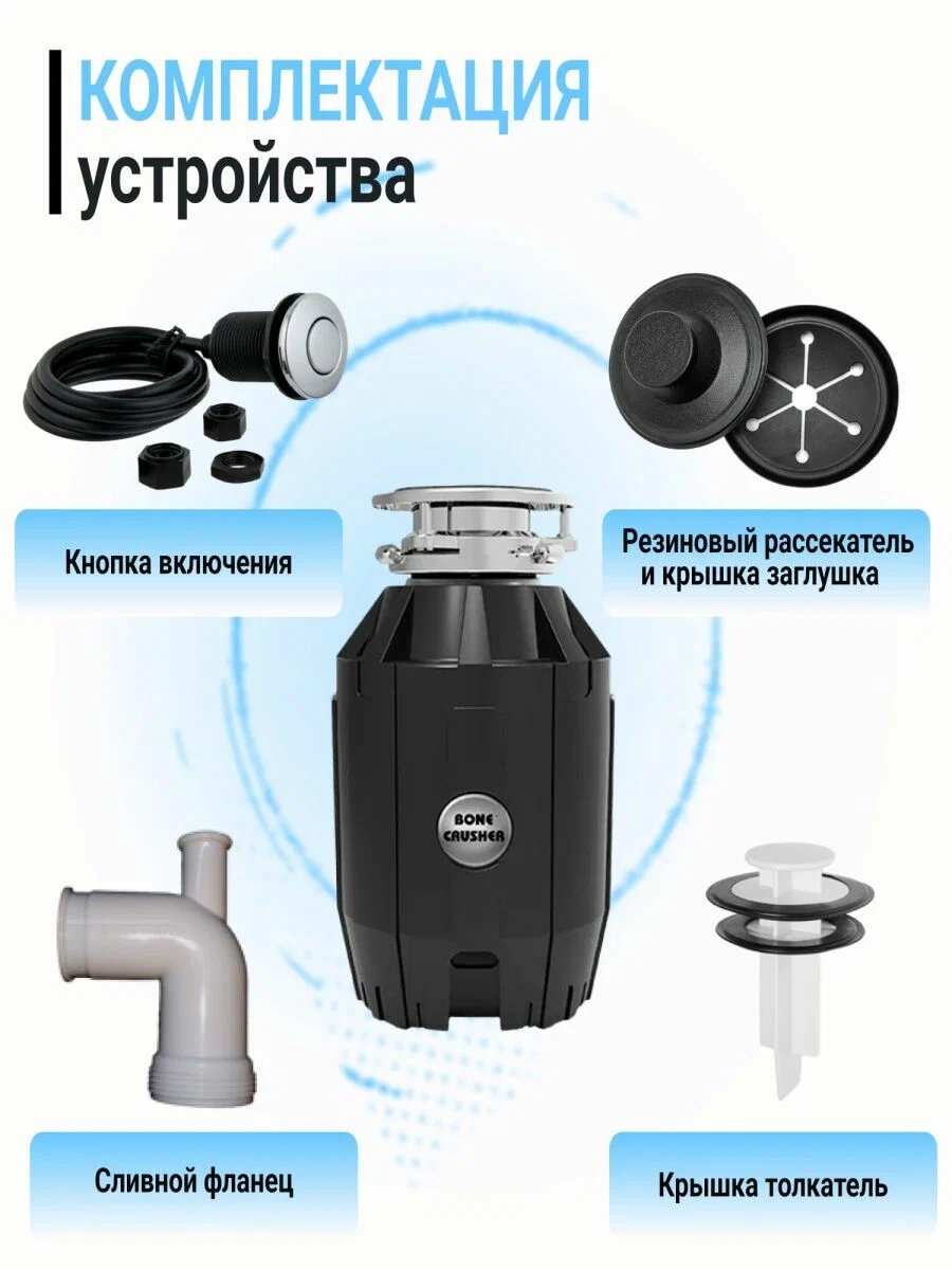Бытовой измельчитель пищевых отходов Bone Crusher BC-910 Slim Line черный + установочный комплект