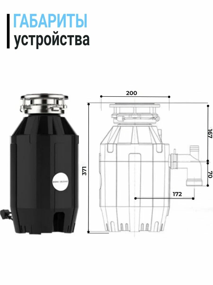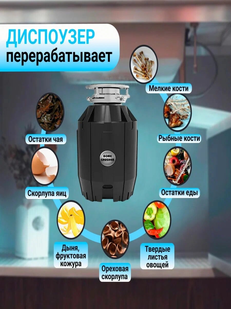 Измельчитель кухонный электрический пищевых отходов бытовой в мойку (диспоузер) Bone Crusher 610 AS