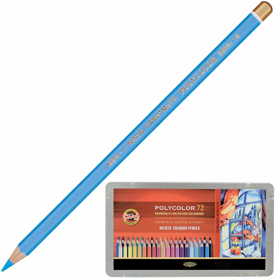 Карандаши цветные художественные KOH-I-NOOR Polycolor, 72 цвета, 3,8 мм, металлическая коробка, 3827072001PL