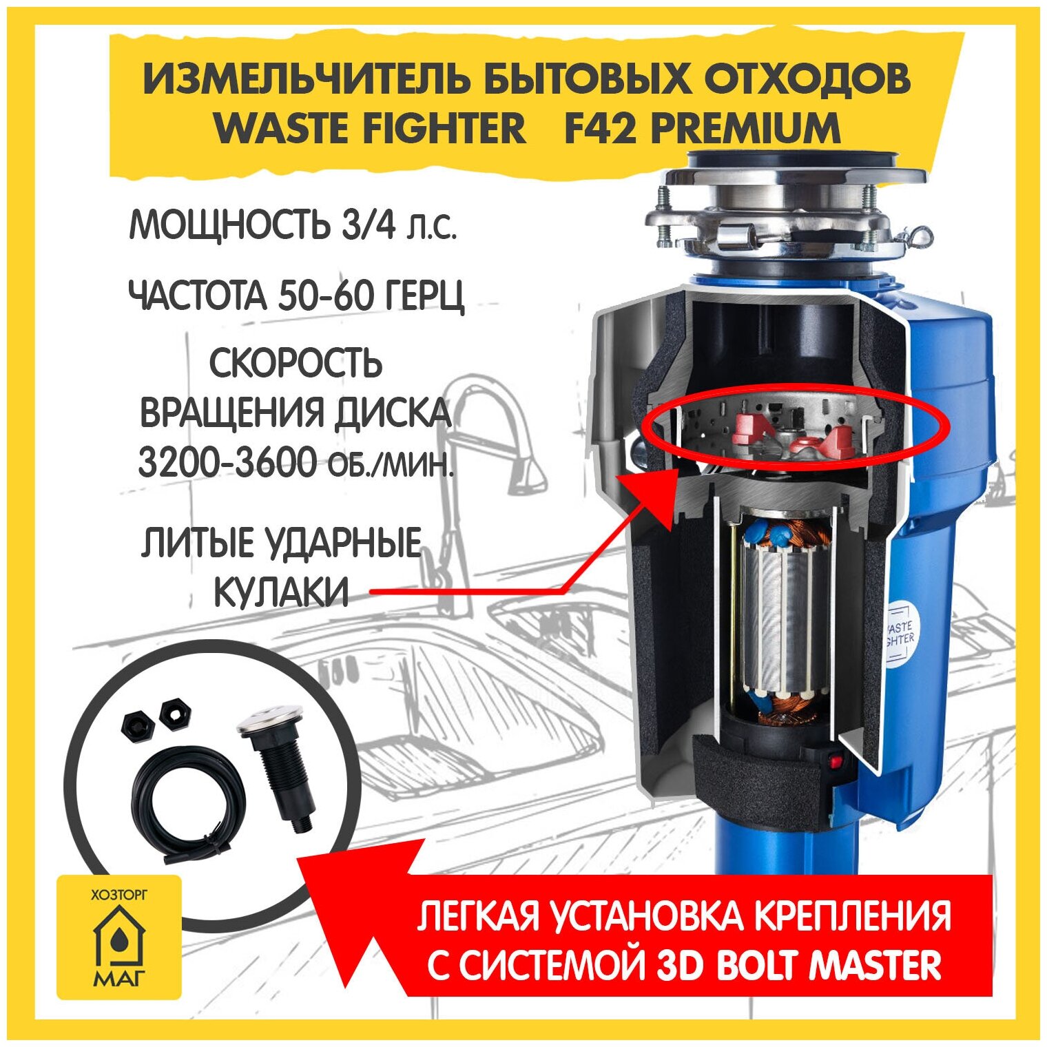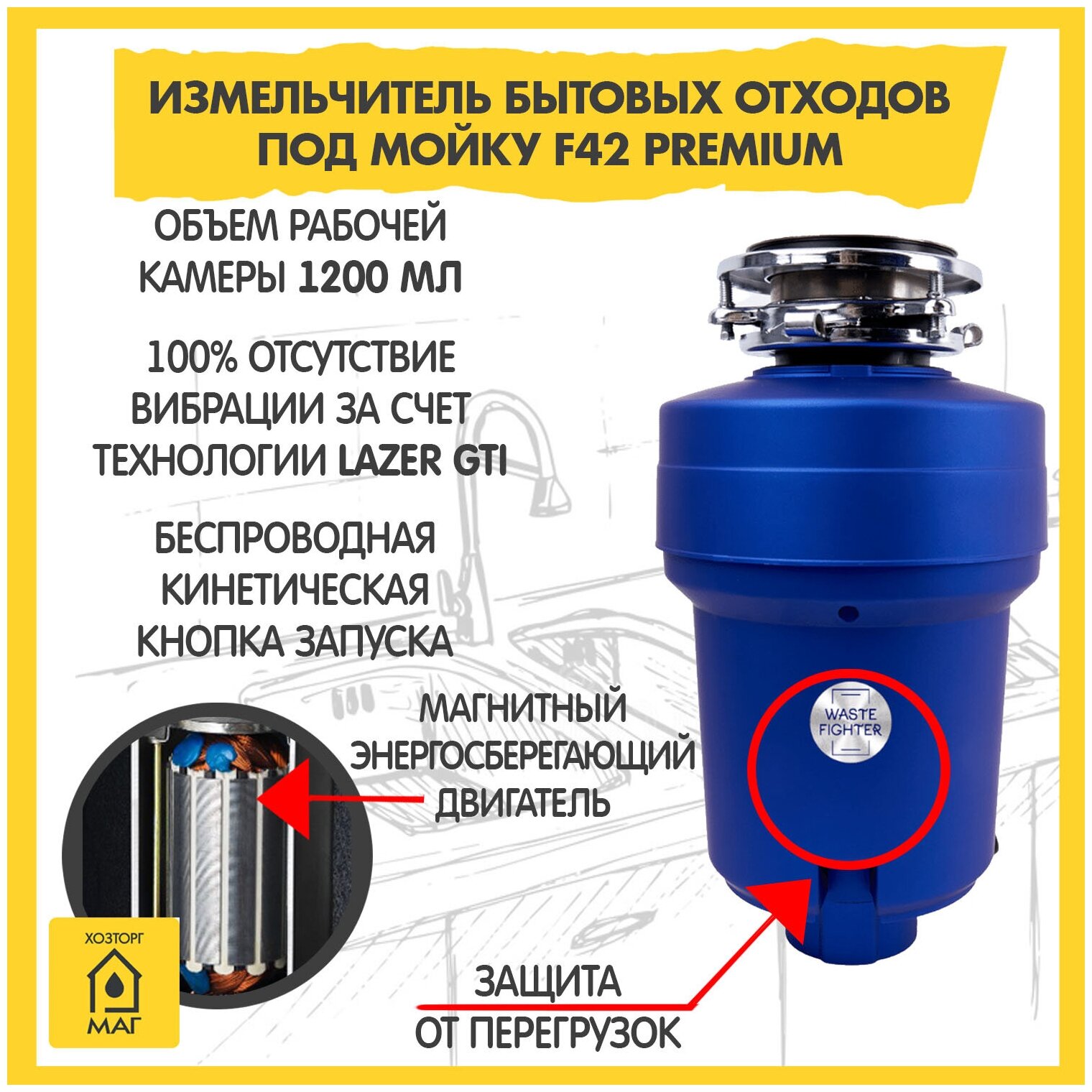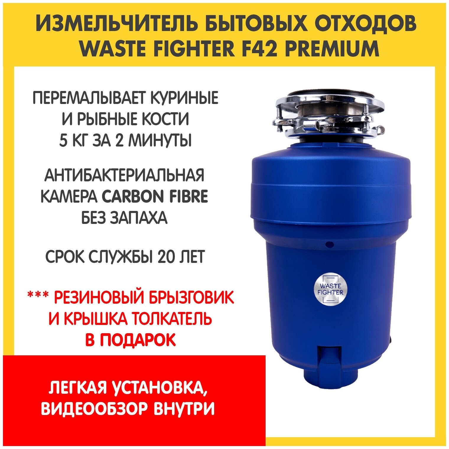 Измельчитель пищевых отходов F-42 Premium, стопер в комплекте, cиний интересное: