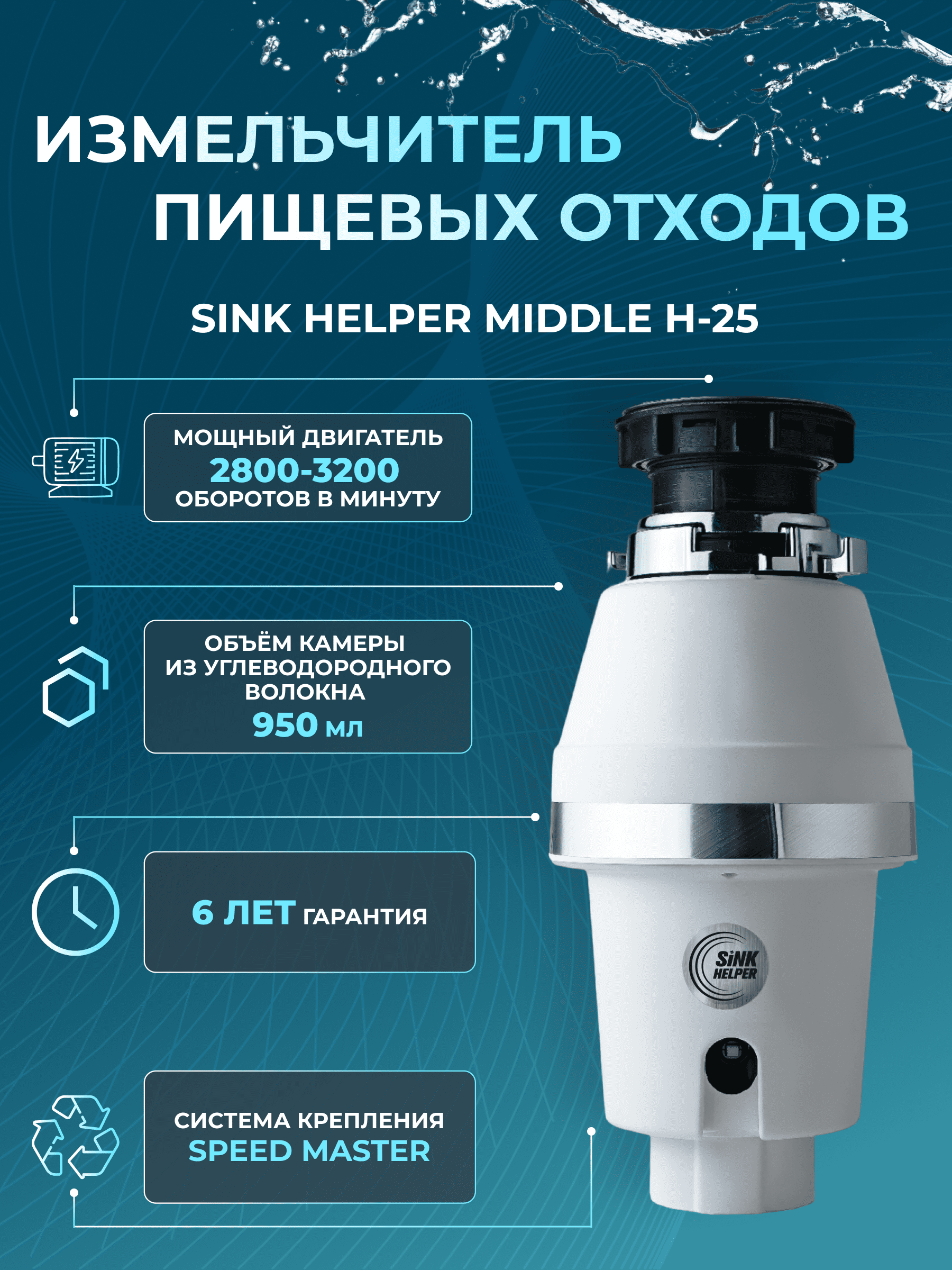 Измельчитель пищевых отходов SINK HELPER Middle H-25 интересное: