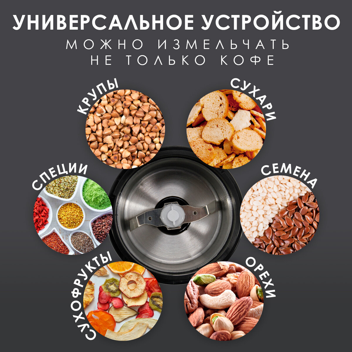 Измельчитель, кофемолка электрическая с емкостью.