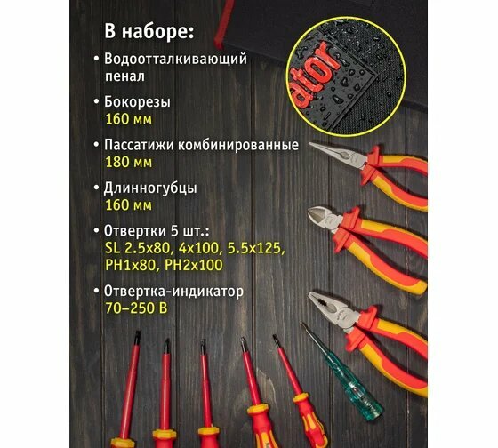 | Дополнительная информация | отвертка-индикатор 70–250 В |
