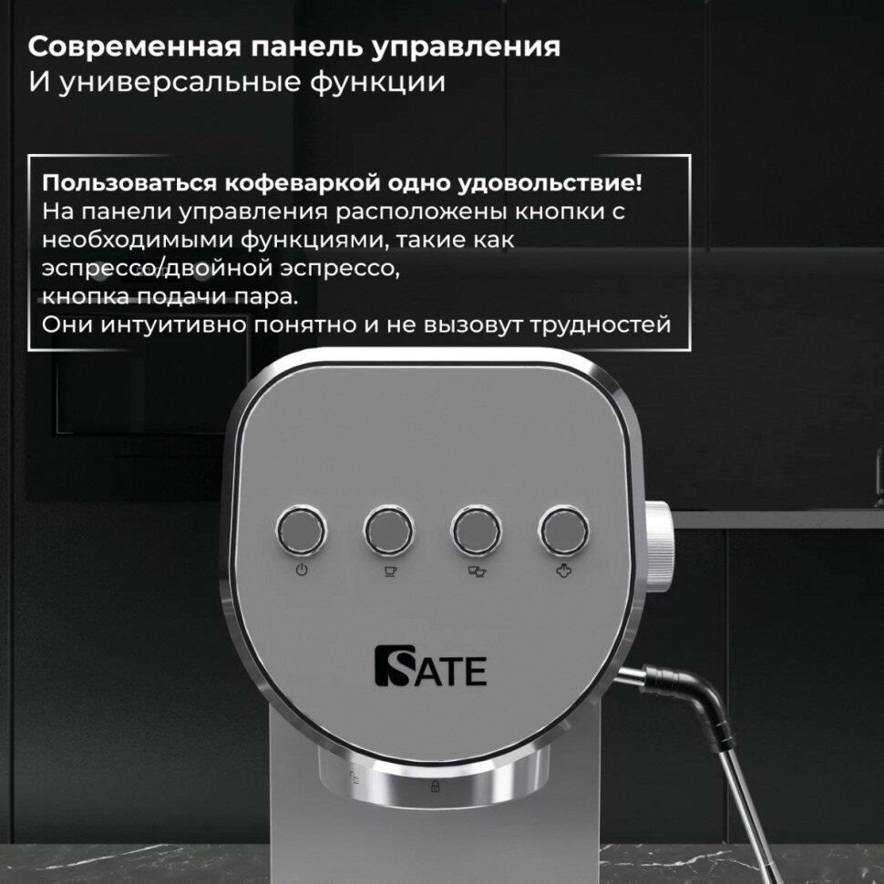 Кофеварка рожковая SATE GT-50, серебро интересное:
