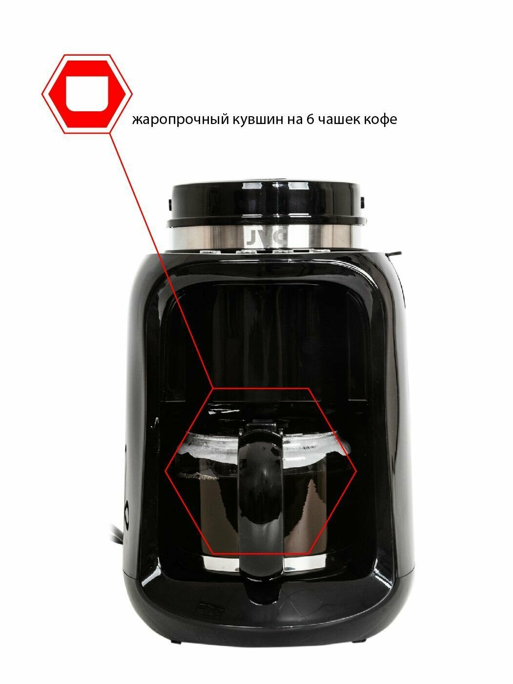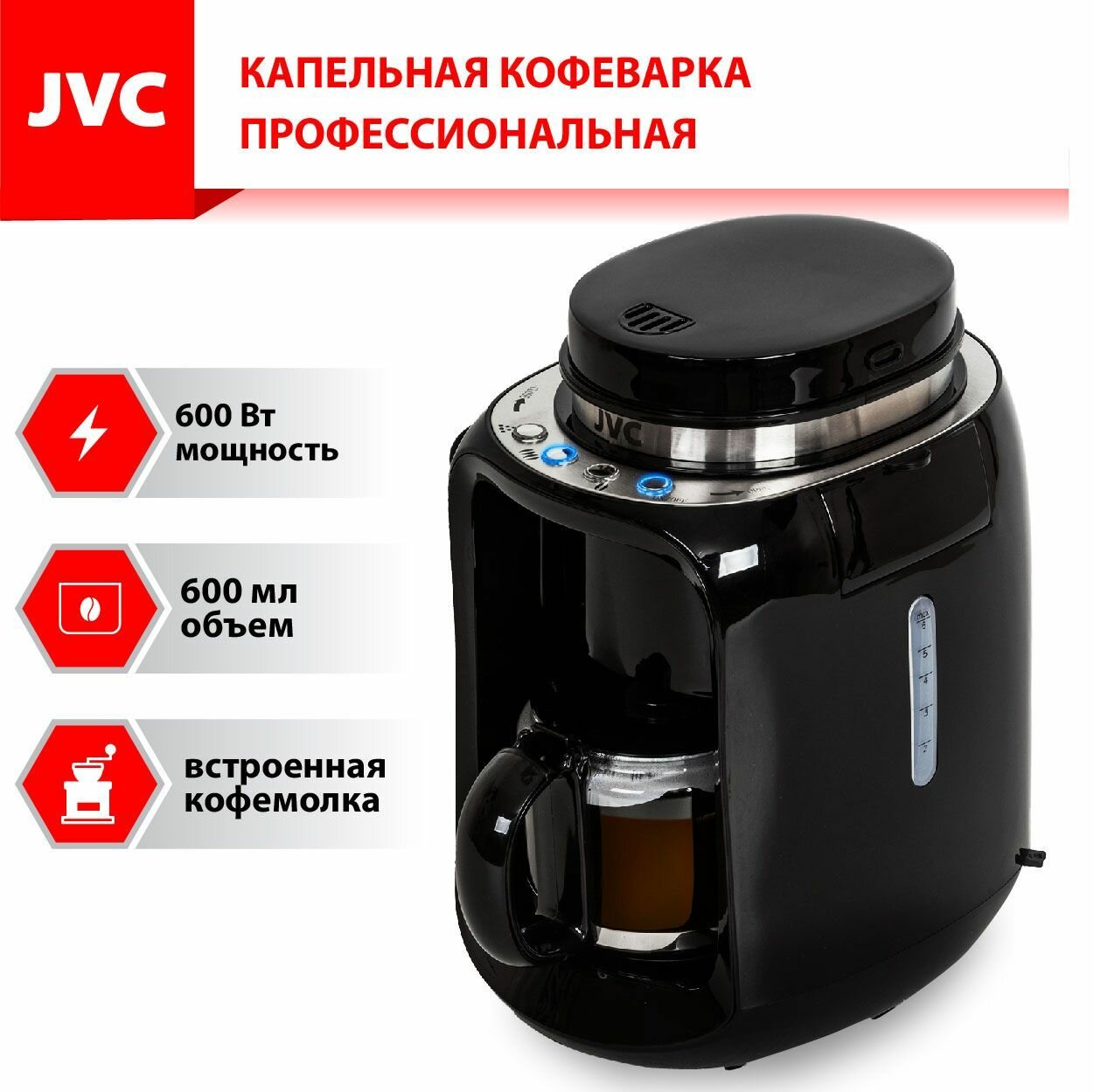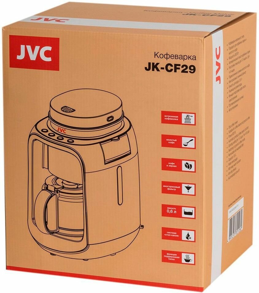 Кофеварка JVC JK-CF29 с кофемолкой, подогрев, капля-стоп, 0,6 л, 600 Вт