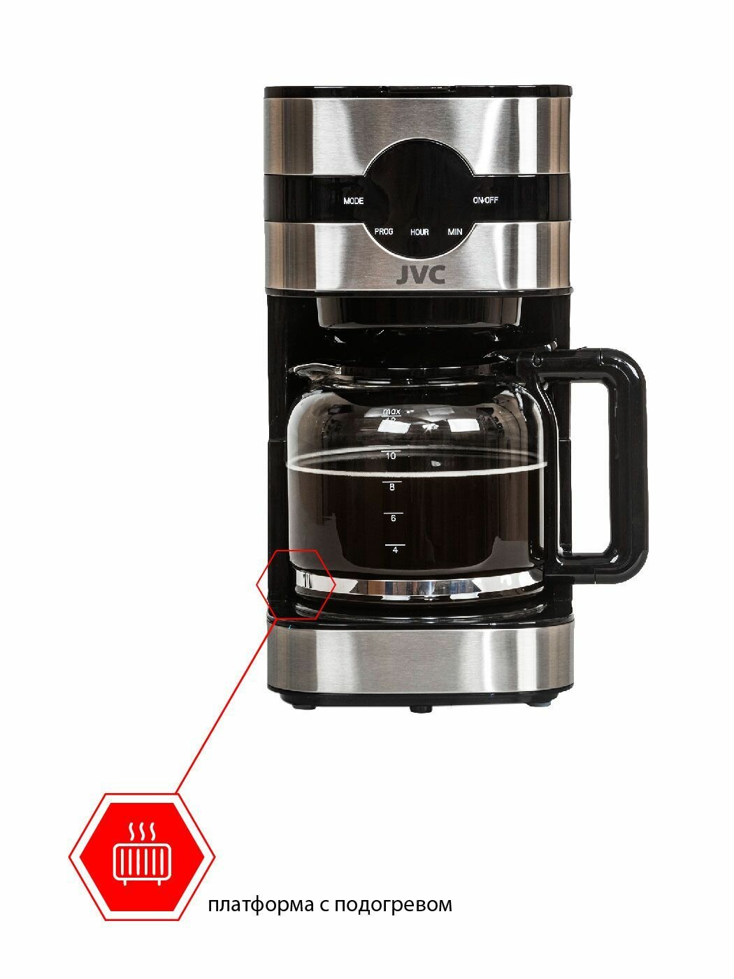 Купить Капельная кофеварка профессиональная JVC до 12 чашек, 3 вида кофе, 3 уровня крепости, подогрев платформы, 1,5 л, 1000 Вт