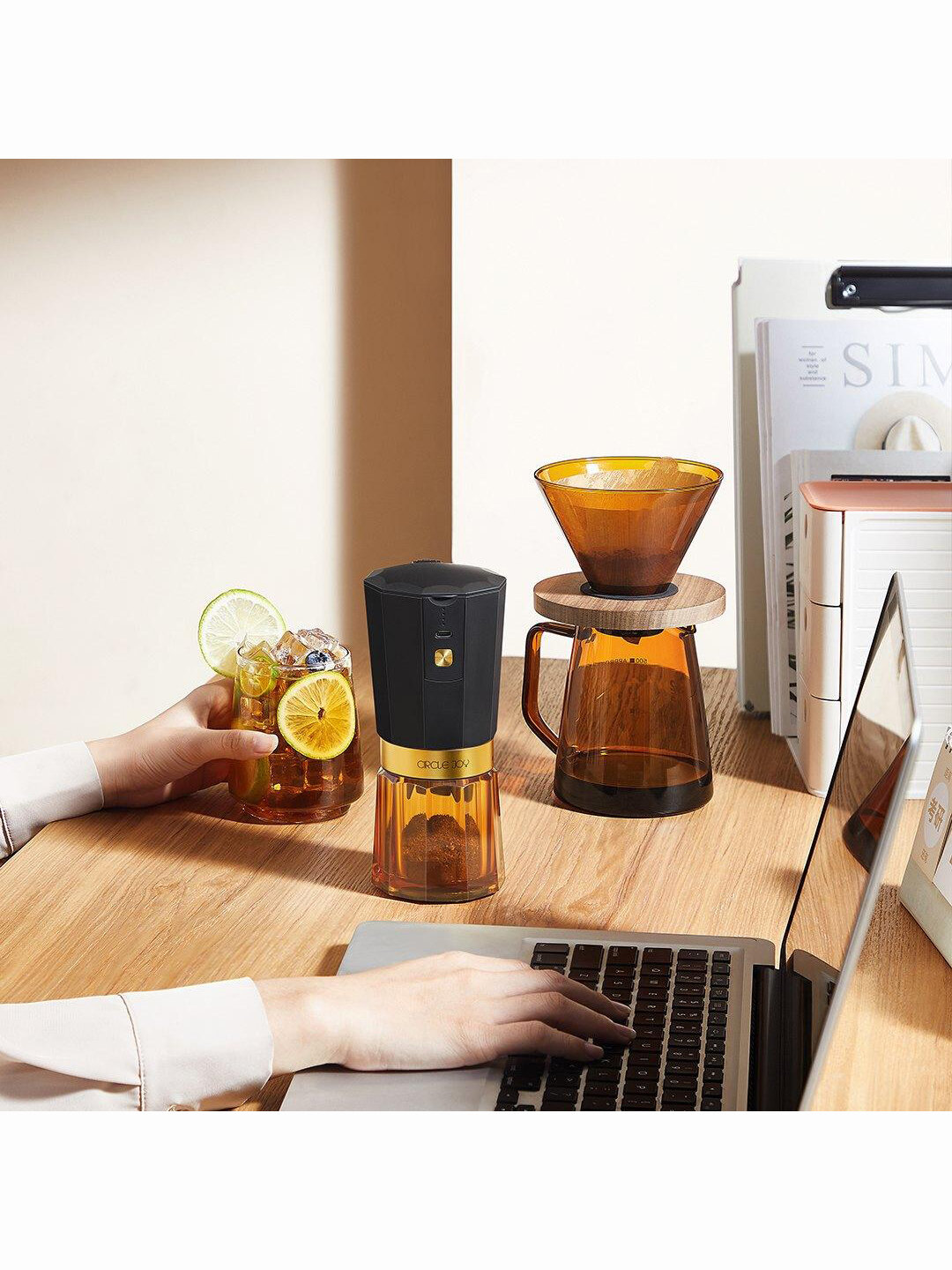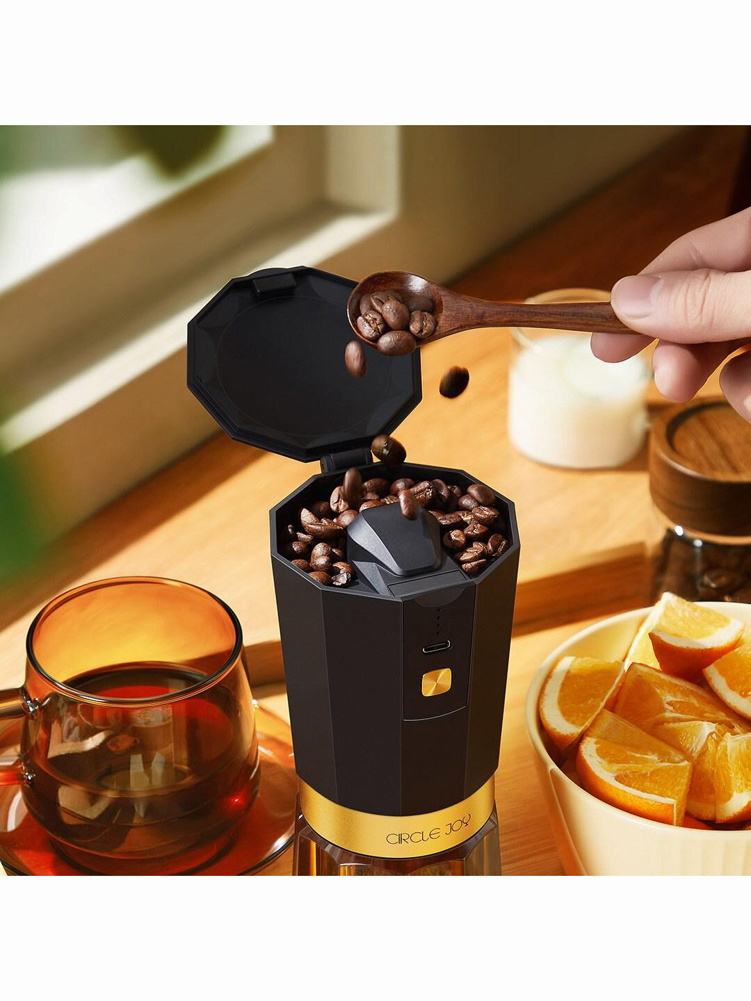 Кофемолка Circle Joy Electric Coffee Grinder, черно-янтарная