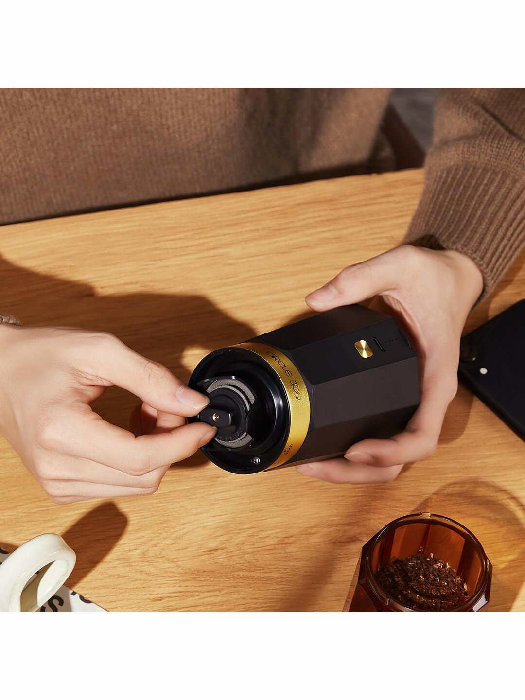 Кофемолка Circle Joy Electric Coffee Grinder (CJ-EG05 Black-Amber RUS), русская версия, черно-янтарная