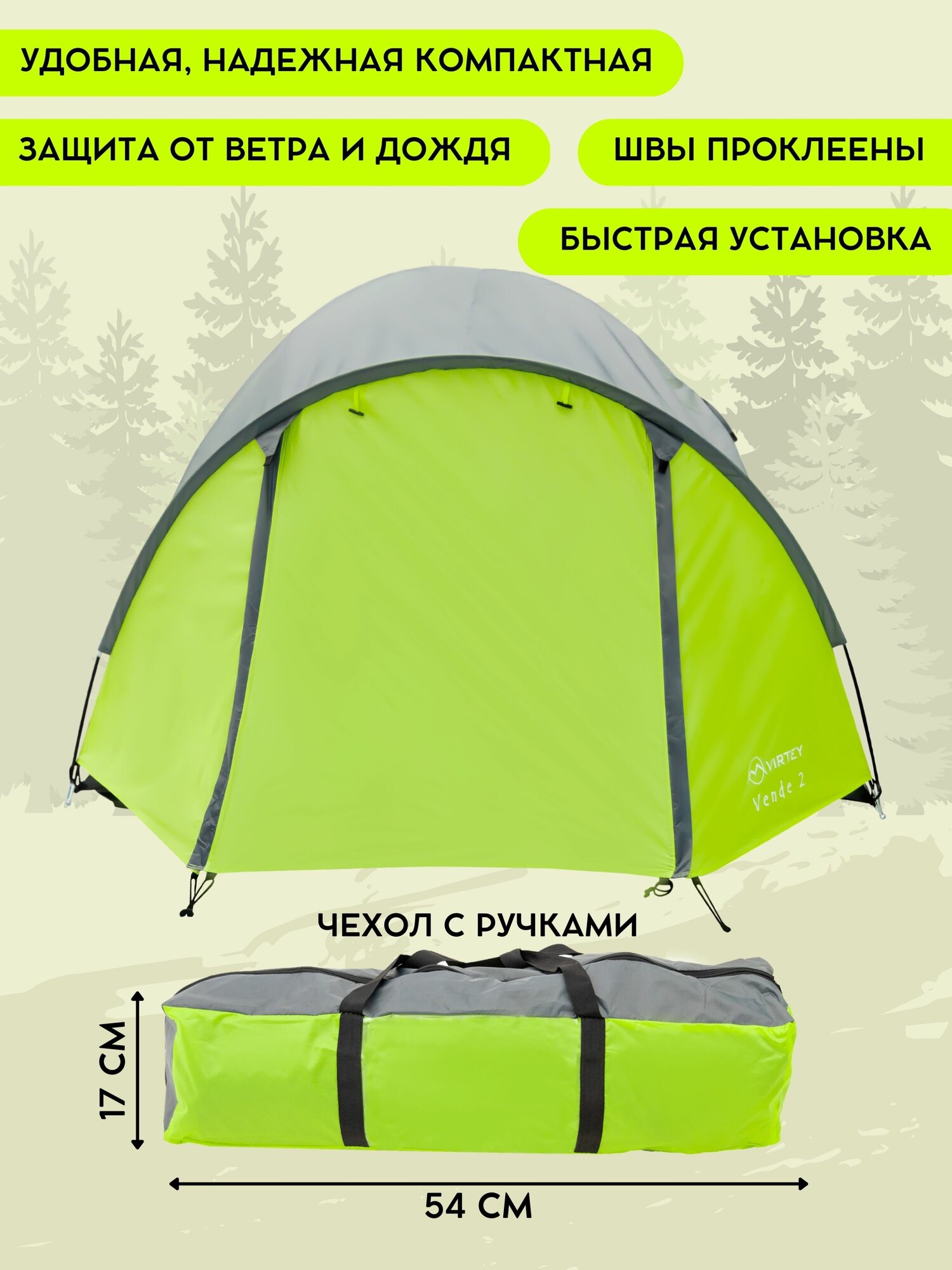 Палатка 2-местная Virtey Vende-2/(100+170)х220x130/Палатка туристическая 2 местная двухслойная с тамбуром/тент для рыбалки/шатер для похода