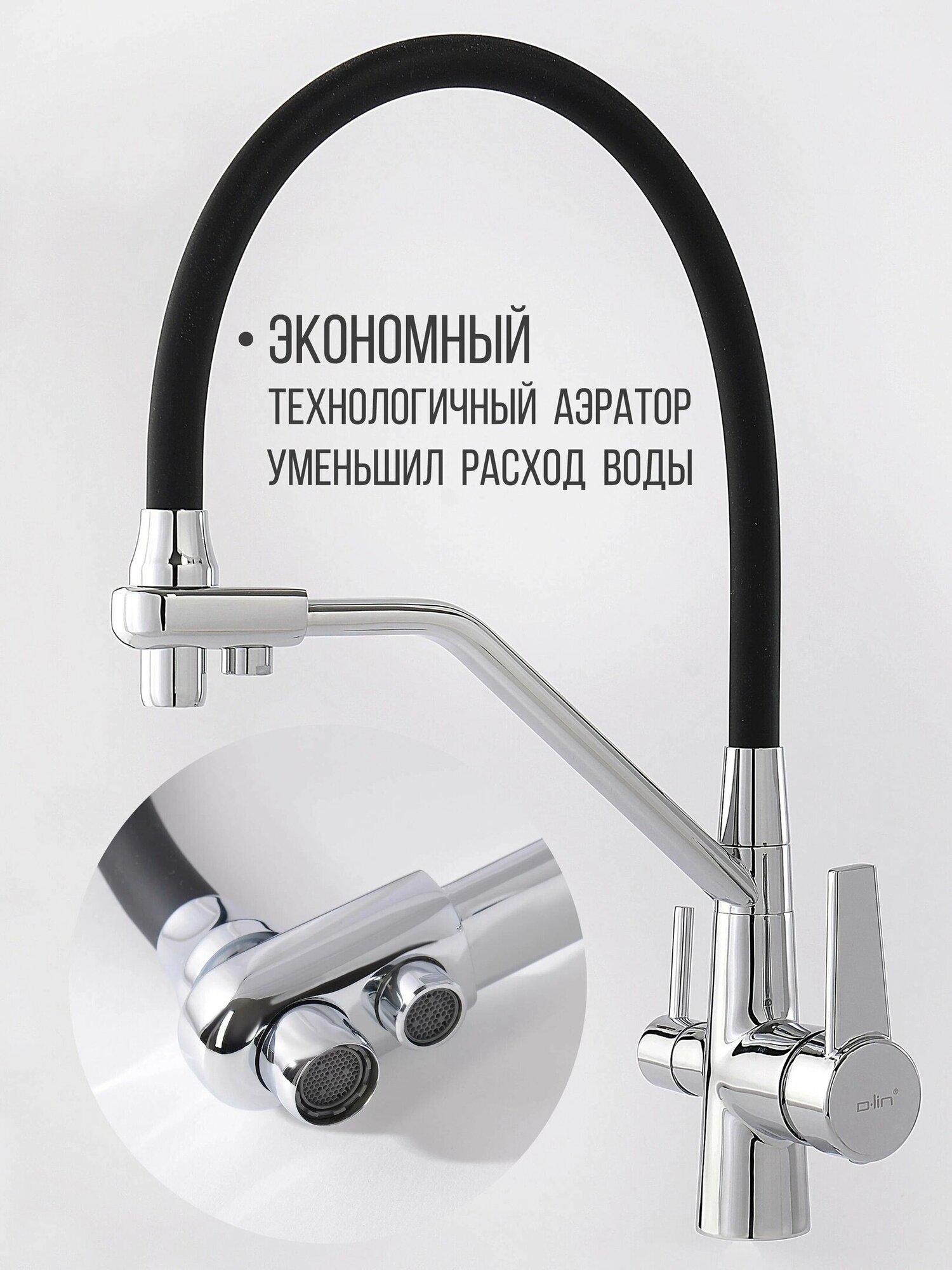Смеситель для кухни D-LIN D159317 с фильтром для питьевой воды, гибким поворотным изливом, черный, хром.