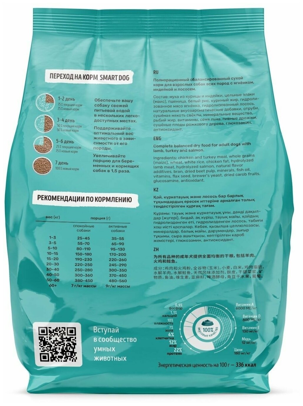 Корм Smart Dog для собак, с ягнёнком, лососем, индейкой, 18 кг