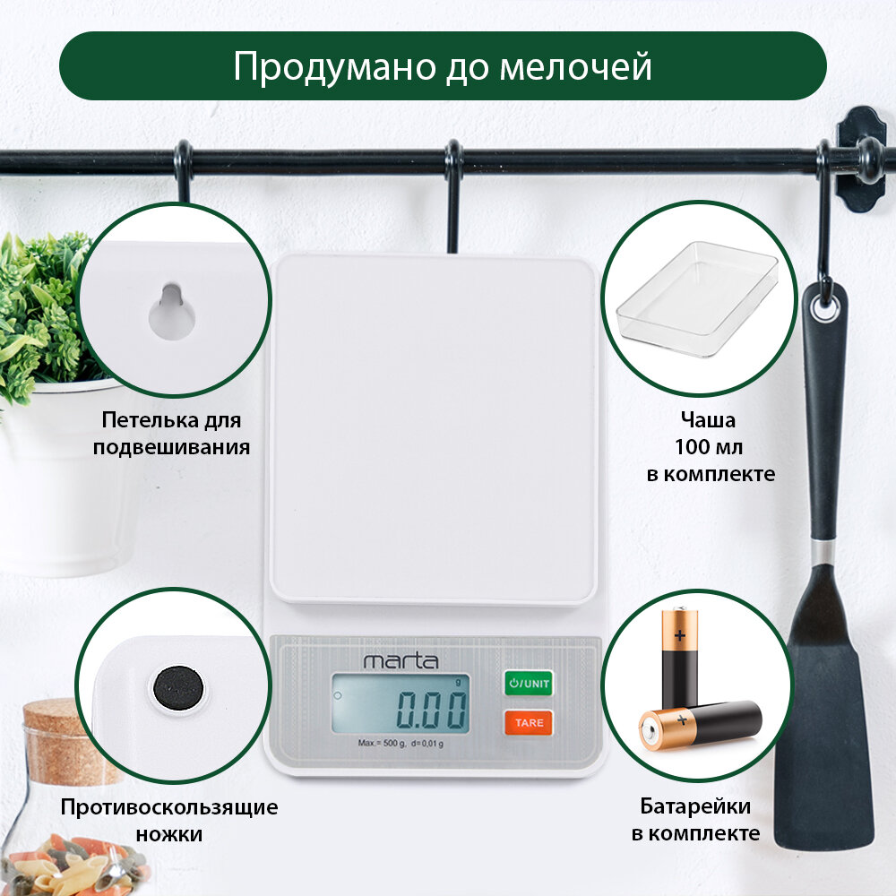 Весы Marta МТ-SC1652 высокоточные белый жемчуг интересное: