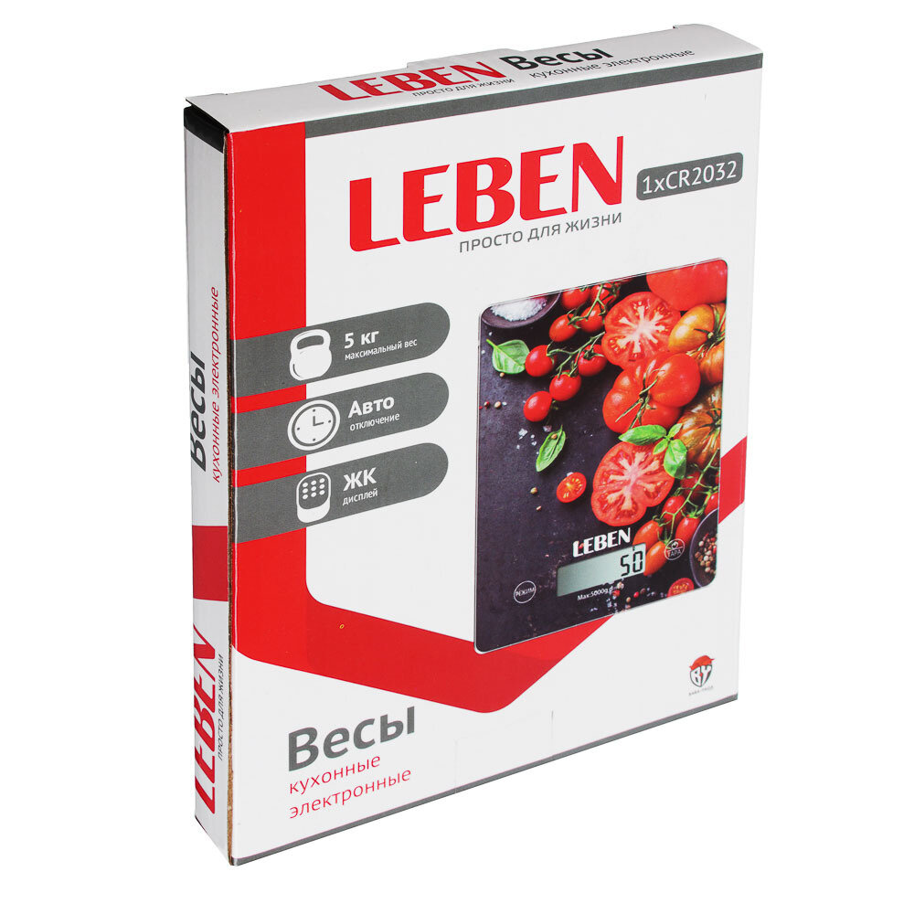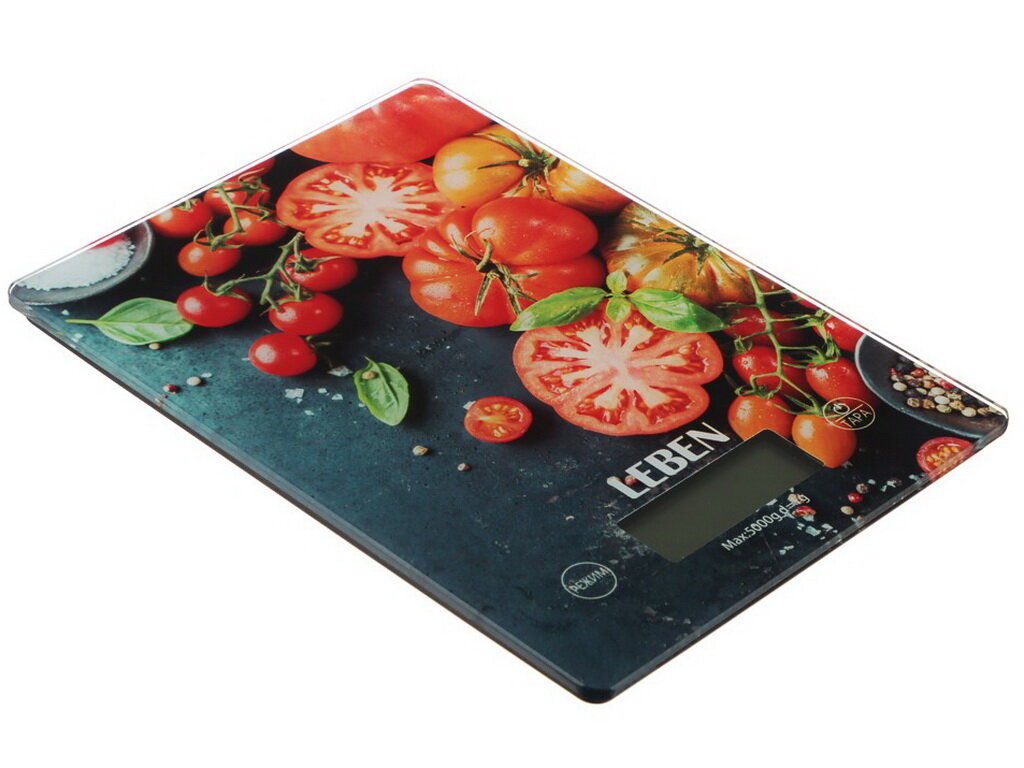 Купить Весы кухонные электронные до 5 кг LEBEN, стекло с дизайном
