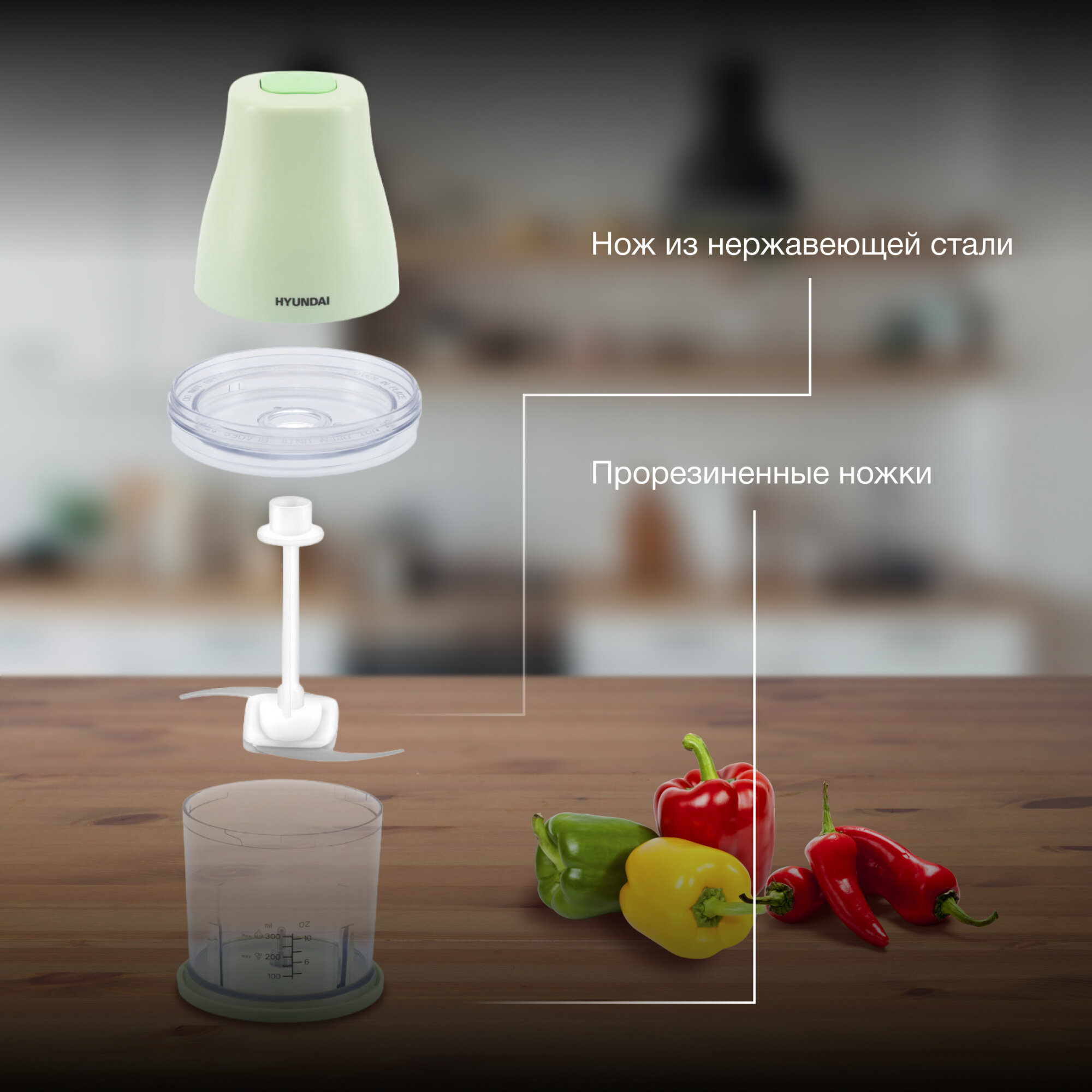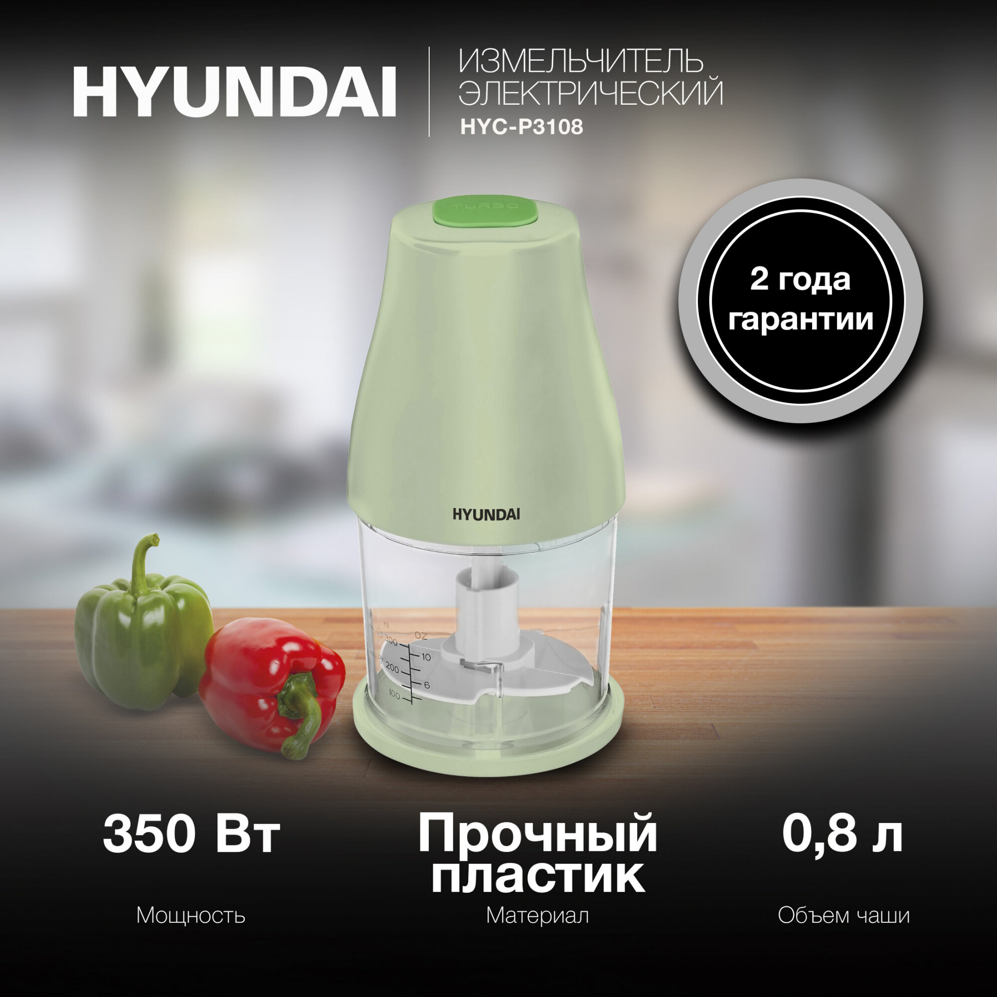 Измельчитель электрический Hyundai HYC-P3108 0.8л. 350Вт черный/зеленый интересное: