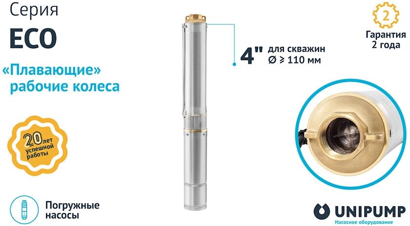 Unipump Unipump Погружной скважинный насос 4" ECO 2-89 ( 0,9 кВт,50 м) интересное: