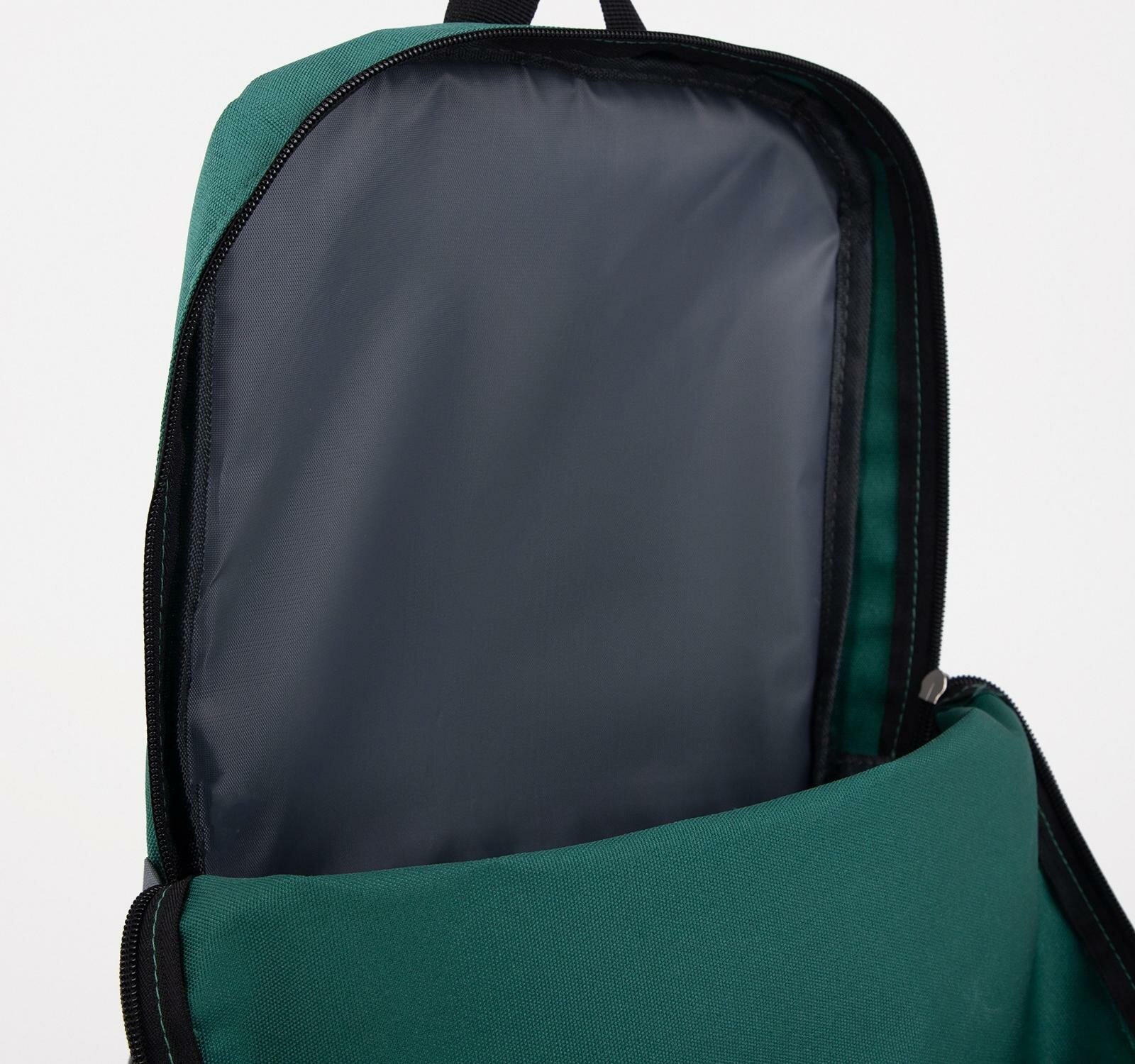 Рюкзак школьный текстильный с карманом, зелёный, черный, 22×13×30 см