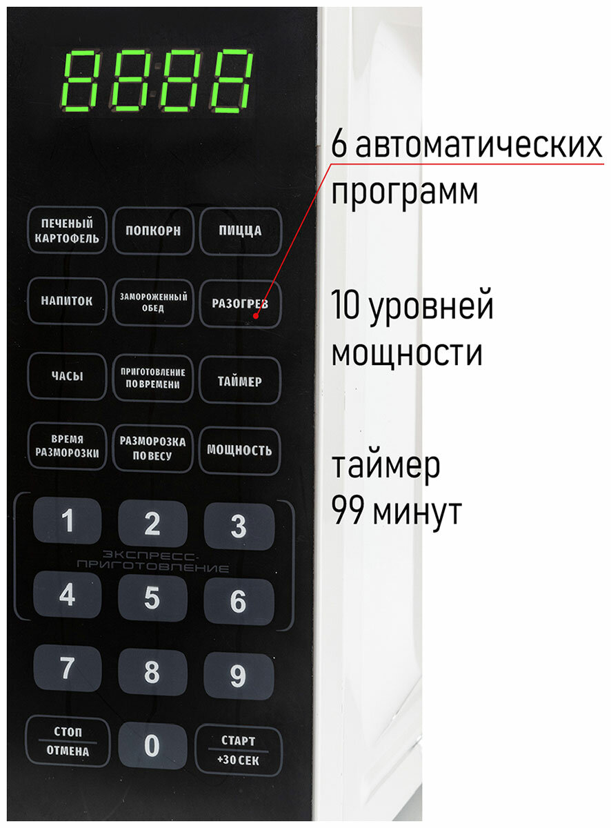 Микроволновая печь FS MWO D 20.10 WH, Сенсорное управление, 6 программ для приготовления, антипригарная эмаль, таймер, блокировка от детей.