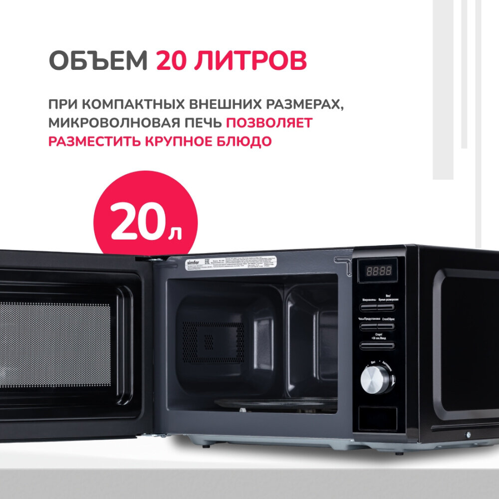 Микроволновая печь соло Simfer MD2260, 20 литров, 700 Вт, черная