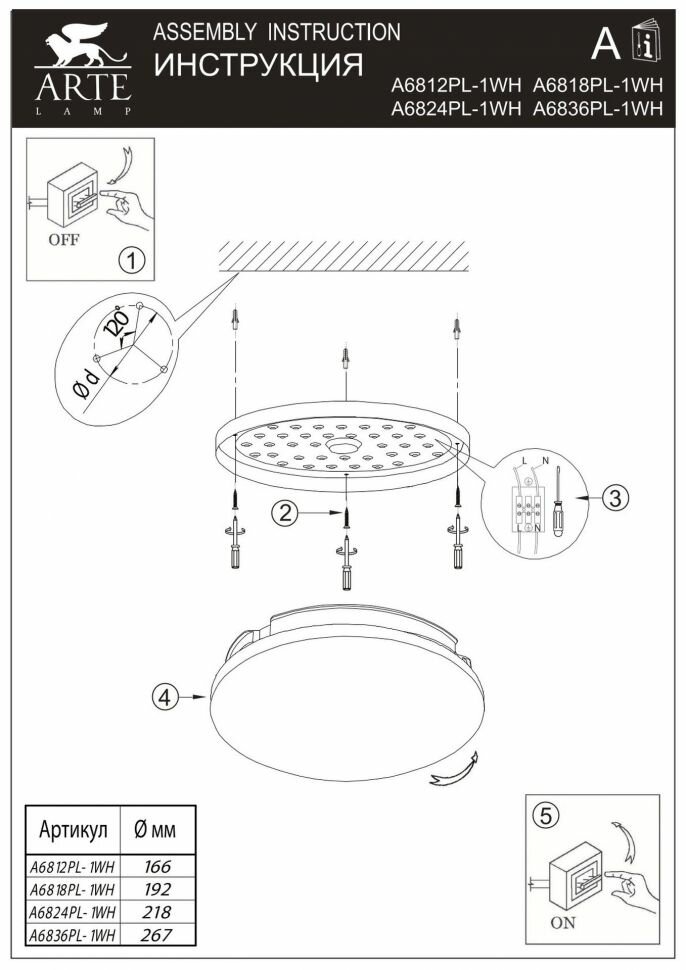 Накладной светильник ARTE Lamp A6824PL-1WH