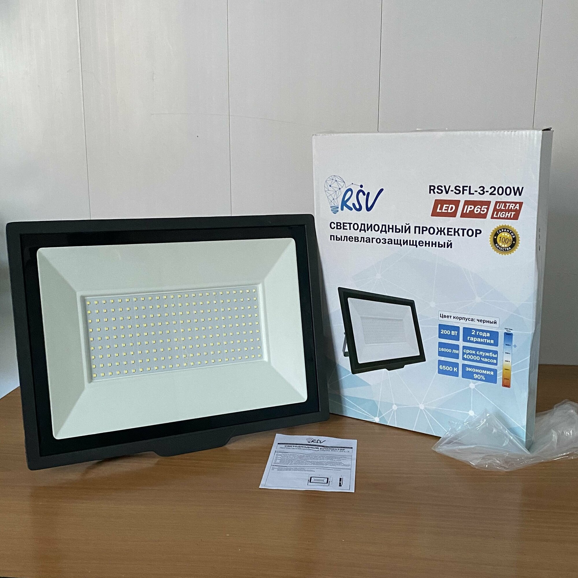 Прожектор светодиодный уличный LED RSV / Светильник настенный и накладной 24000 Лм, 300 Вт, IP65, черный, уличное освещение, фонарь, RSV-SFL-3-300W-6500K-IP65