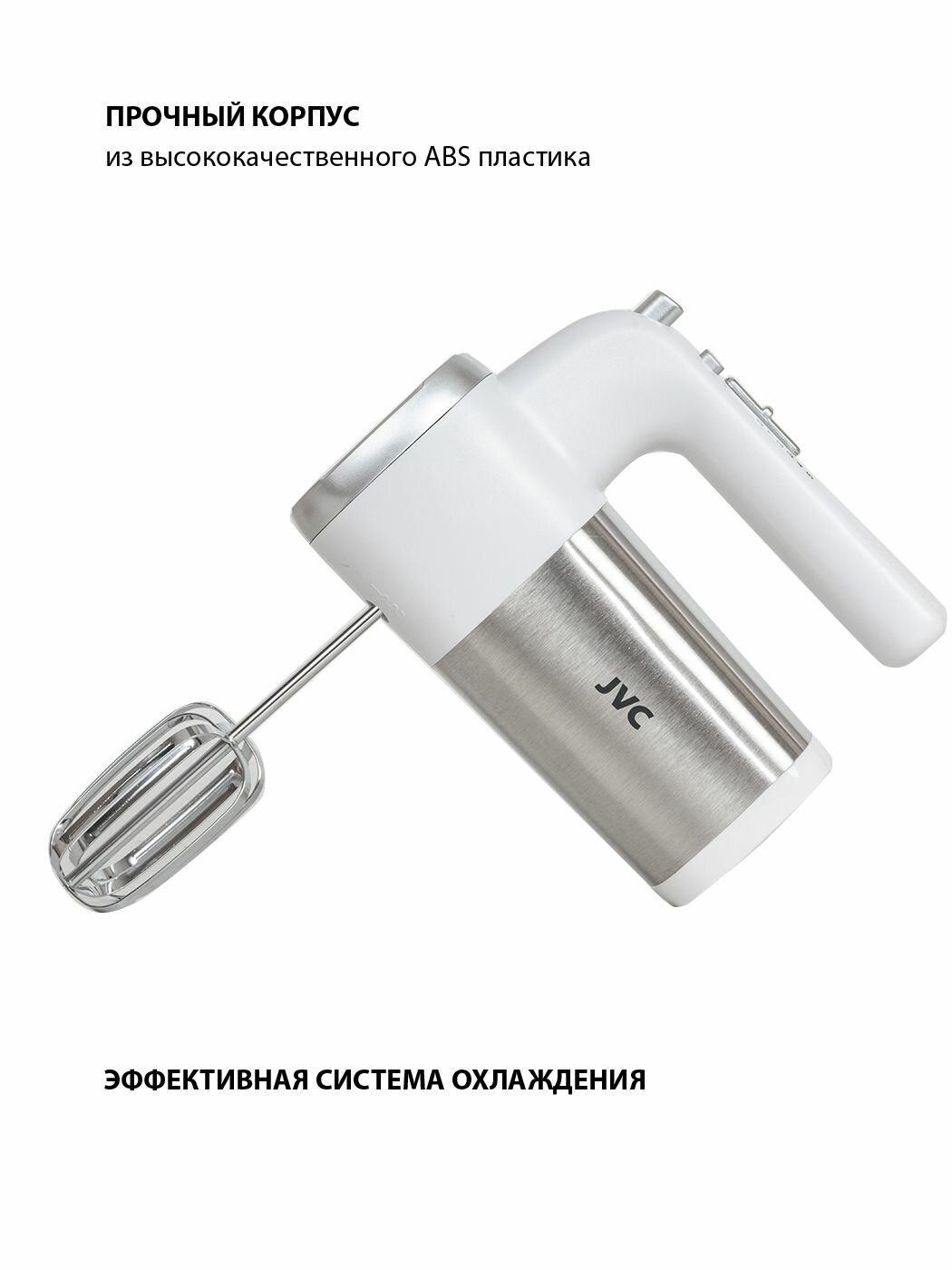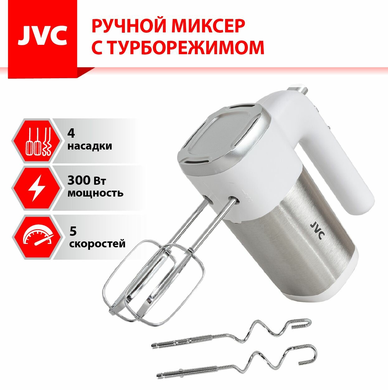 Купить Миксер ручной JVC домашний с эффективной системой охлаждения, 5 скоростей, режим турбо, 4 насадки, 300 Вт