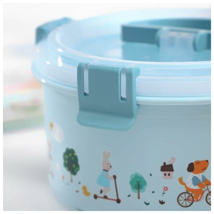 Ланч-бокс «Веселые зверушки», 16×7,5 см, круглый, с ложкой, цвет микс