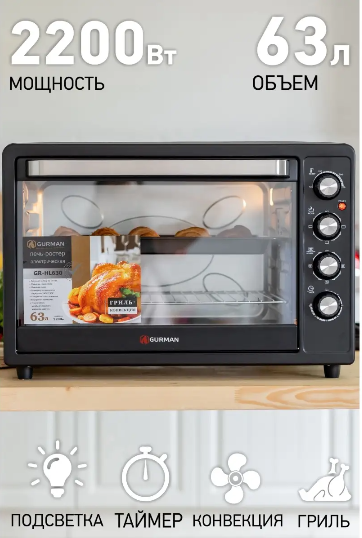 Ниже Вы можете прочитать отзывы на Мини-печь GURMAN GR-HL630, 63л, 2200Вт., ознакомится с подробными характеристиками, посмотреть интересные обзоры и фотографии на Мини-печь GURMAN GR-HL630, 63л, 2200Вт..