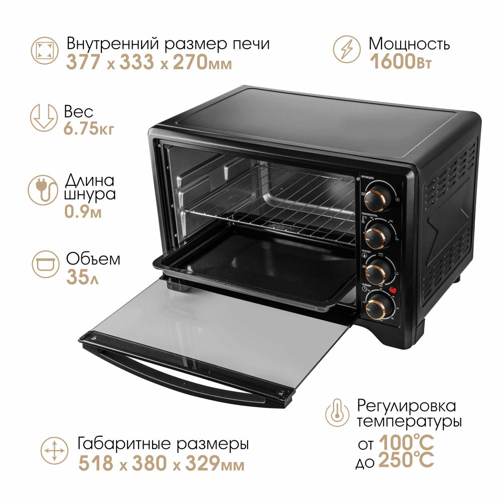 Мини-печь Endever Danko 4036, черный цвет, мощность 1600 Вт, объем 35 л, температура 100-250 градусов