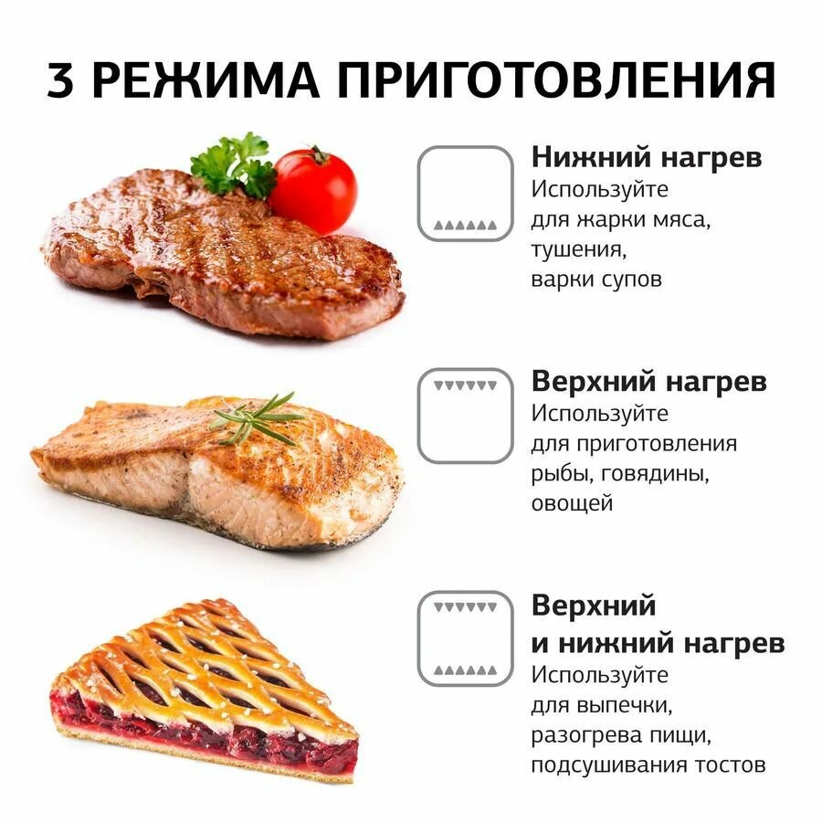 | Режимы | верхний нагрев / верхний+нижний нагрев / нижний нагрев |