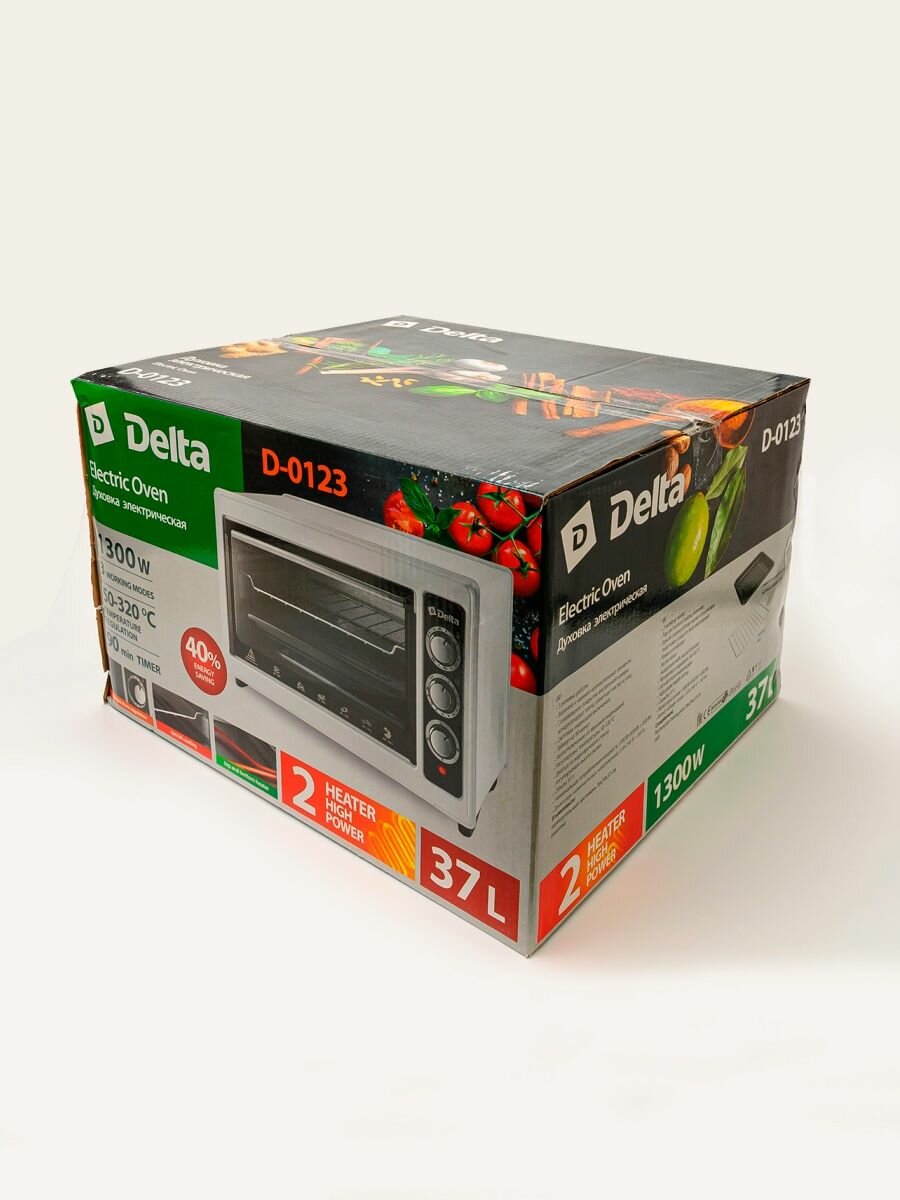 Духовка электрическая, Delta, D-0123, 37 л, 1300 Вт, с термостатом, тен повышенной мощности, 2 нагревательных элемента, черная
